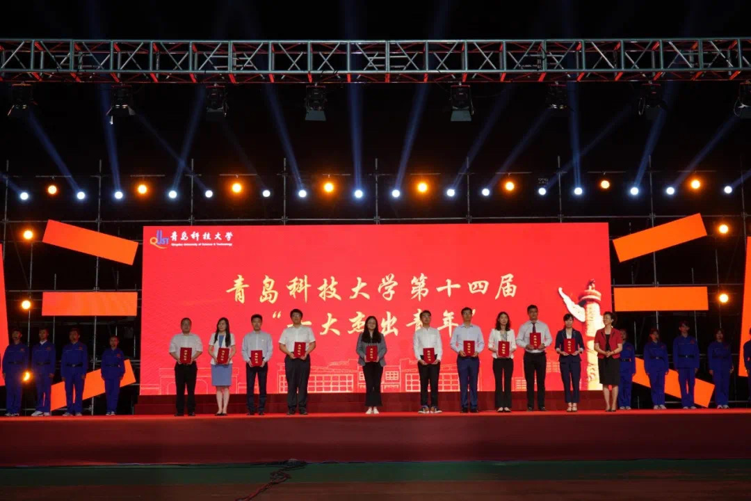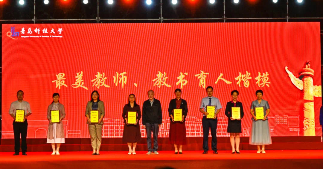 “科大情 强国梦”2021年迎新生、庆国庆师生文艺晚会于崂山校区操场举行。晚会中,学校对2021年“最美教师、教书育人楷模”、学校“第十四届十大杰出青年”和2021年“市级以上各种荣誉称号”获得者颁奖,我院教师董华、索琪、吕承超受表彰。