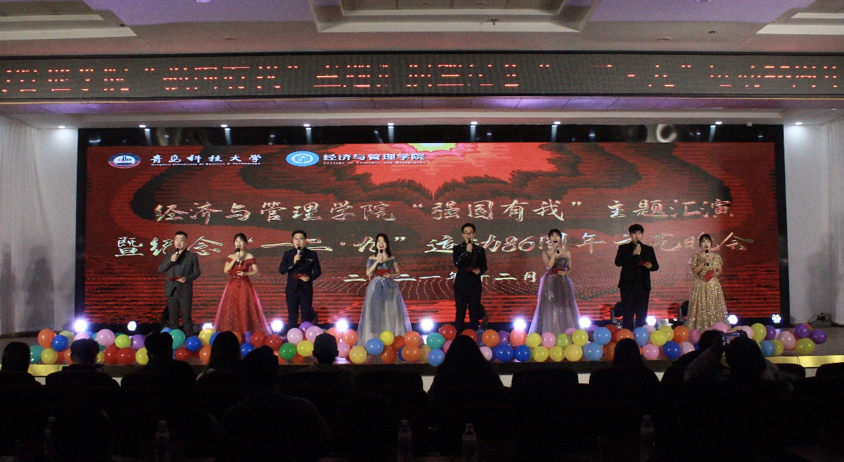 本次晚会的准备工作历经一月有余,学院老师与演职人员“经”心筹划,台前幕后学生会工作人员“经”心配合,最终共同为学院师生带来了一场“经”彩纷呈的视听盛宴。本次晚会紧跟新时代步伐,从开篇经管学子的的青春洋溢,到追寻梦想的勇往直前,再到对未来生活的憧憬与向往,始终围绕“青春与时代”“奋斗与强国”的主旋律,以“一二•九”运动86周年为契机,打造了一场生动震撼的思政大课,由内而外的展现出经管学子家国使命的奋斗担当、伟大新时代的豪迈情怀。