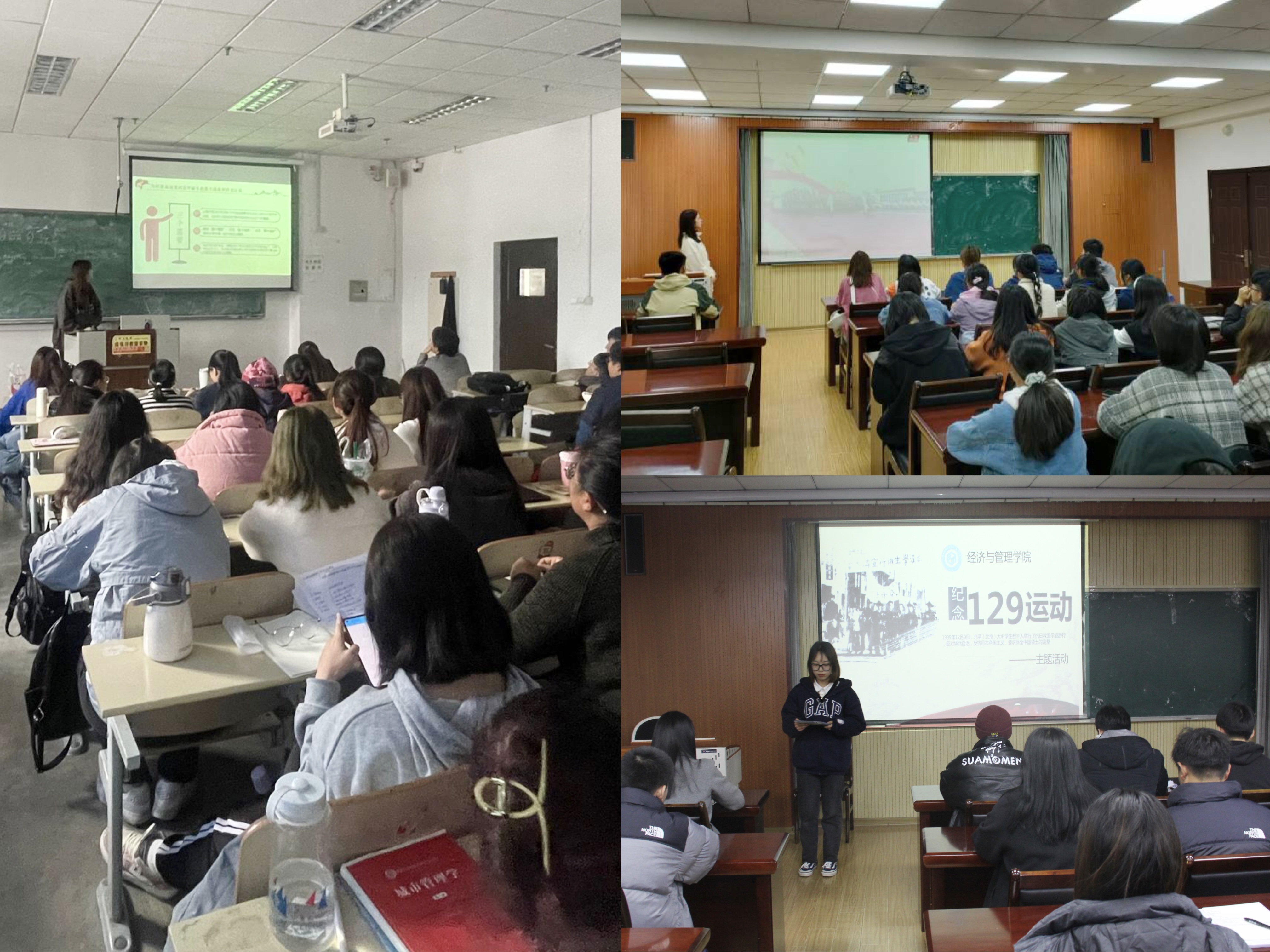 牢记“坚持政治性与学理性相统一”的要求,党团联动 、以党带团,以主题党日活动、“三会一课”等途径,以集体学习和自学相结合,围绕党支部、团支部开展活动,引导党员率先强化思想、砥砺担当,并以学院团学骨干为着手点,开展纪念“一二•九”主题学习活动,朗读红色经典,诵读青年心声,以点带面、全面辐射,强化学生理论认识和思想认知,引导学生在实际生活中传承先辈的革命精神,把所学的理论知识真正融入情感和意志。