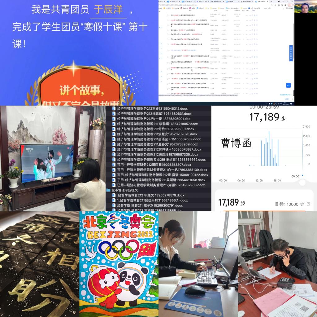 持续构建“五育并举”协同育人模式,助力学生实现黄金期“弯道超车”,强化德育提升素养,组织全体学生参与“传承红色基因、争做时代新人”红色征文活动并积极投稿学校;开展“我的读书日记”读书活动,并分阶段引导学生做好读书笔记、撰写读书报告;组织学生积极开展“寒假十课”学习并跟踪进度,以主题团课的形式组织全体学生学习共青团十八届六中全会精神,组织全体学生观看冬奥会开幕式,并积极参与“迎冬奥,我来赛”网络知识竞赛,激发冬奥会等时政热点的思想政治教育功能。强化智育巩固学业,引导全体学生聚焦自身主责主业,成立专业内部学习互助组开展课程补习,利用假期时间及时查漏补缺;围绕科创竞赛全面铺开,组织全体学生积极参与科创赛事,并就学生组队、选题、指导、ppt制作、参赛经验分享及心理辅导等开展“一条龙”服务,助力学生培育科创思维。强化体育夯基固本,组织学子积极响应学校“科大与你一起ying冬奥·年”活动,利用微信运动、运动器械等开展体育运动,确保每日步数 6000 步以上、运动里程 2Km 以上、运动时长超过 40 分钟,以实际行动积极响应学校“爱体育·兴科大”号召。强化美育涵养情感,充分利用春节、冬奥会契机,组织学生积极参与“华人色情