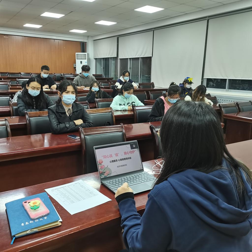 为严格落实学校“校、院、班、舍”四级心理工作体系,科学解读疫情下大学生心理问题,正确认识疫情带来的焦虑情绪,全方位守护学生心理健康,4月12日晚,学院通过线上线下相结合的方式,于经管楼419会议室开展“同心战‘疫’,用心守护”心理委员心音使者培训会,培训会由学院心理工作站站长付凯主讲,各年级心理委员以及心音使者参加了此次培训会。