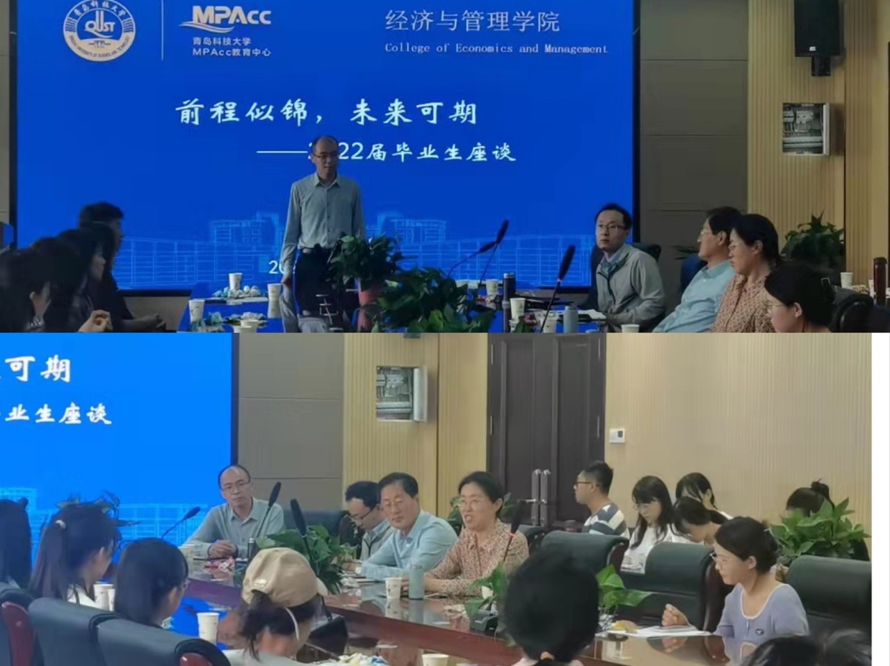 MPAcc教育中心于经管楼313会议室开展会计硕士毕业生座谈会活动。党委书记李德成、MPAcc中心副主任祝兵、会计硕士指导教师张占贞、张先敏及2022届毕业生参与座谈会。MPAcc教育中心主任于培友主持座谈会。