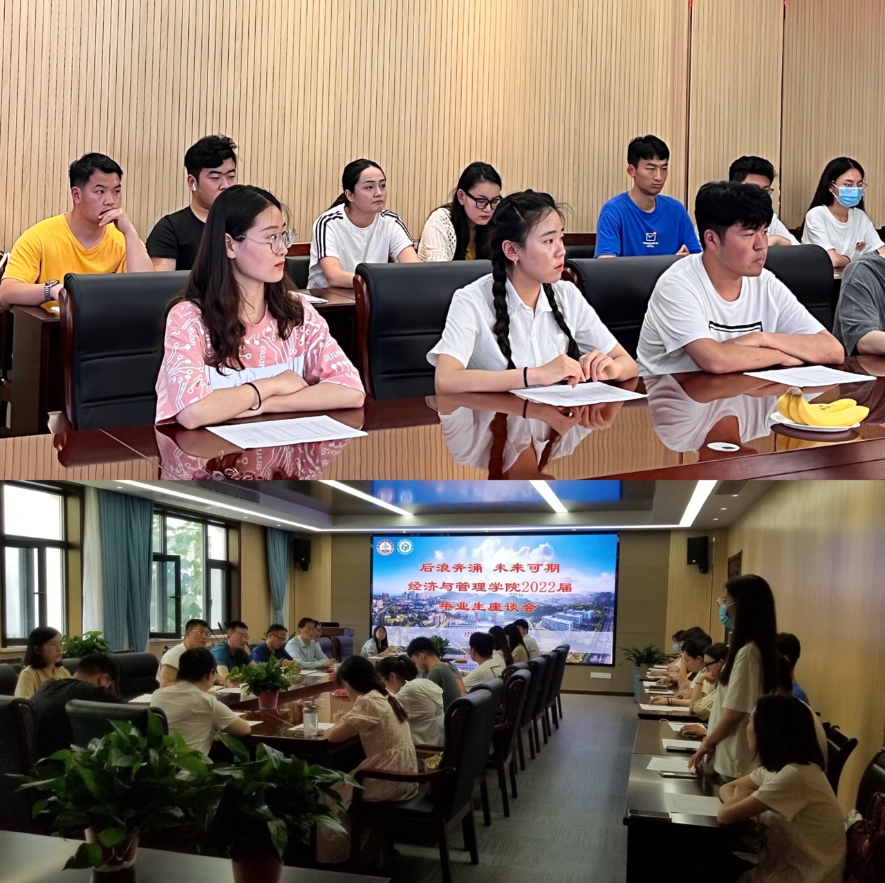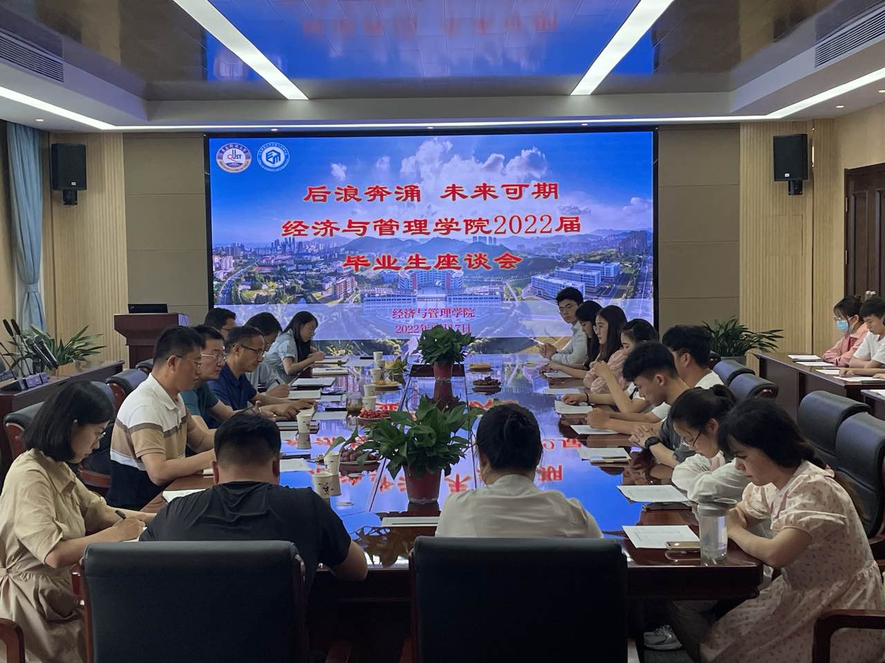 “后浪奔涌 未来可期”2022届毕业生座谈会在经管楼313会议室举行。学院领导班子成员,毕业班辅导员以及各专业优秀毕业生代表共同参加了此次座谈会。座谈会由2018级辅导员张晓帆主持,进一步增强毕业生追寻梦想、立志成才的责任感和使命感,同时广泛听取学生对学院发展的意见建议。