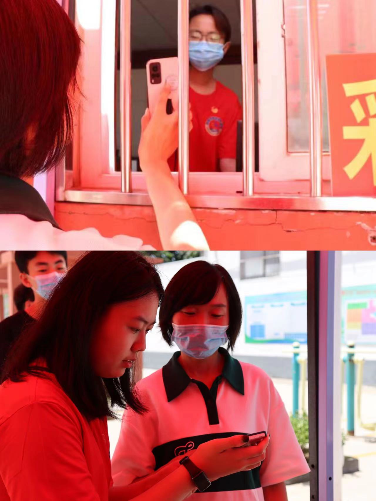 第二天,恰逢南张街道全员核酸,实践团成员们又担当起了志愿者,帮助村委会维护排队秩序,帮忙架起排队遮阳棚,张贴好全民核酸宣传页,帮助对手机操作不熟练的老人进行核酸预约登记