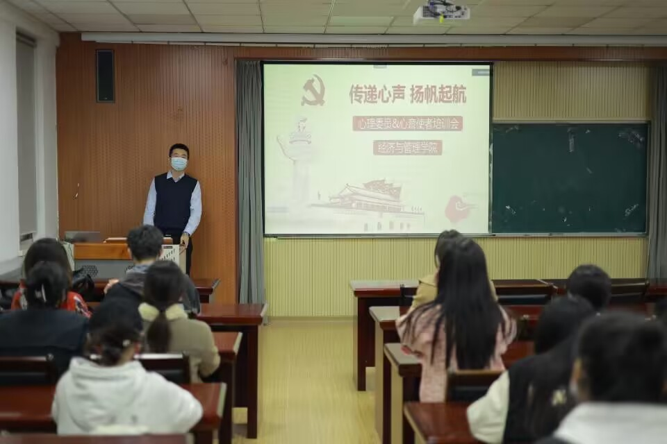 于经管楼419会议室开展“传递心声,扬帆远航”心理委员、心音使者培训会,培训会由团委老师付凯、袁绍正主讲,各专业心理委员以及心音使者分批次参加了此次学习。