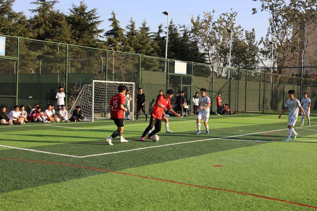对战艺术学院,比赛进行中,场上队员激烈交锋,场下加油呐喊不绝于耳。比赛现场异常激烈,绿茵场上红白双方秉持友谊第一,比赛第二的体育理念,在激烈的技术交流中,经管最终以落后三分惜败,拉下第三场小组赛的帷幕。比赛是体育精神与友谊的桥梁,相信经管学子在赛后的复盘中总结经验,再接再厉!