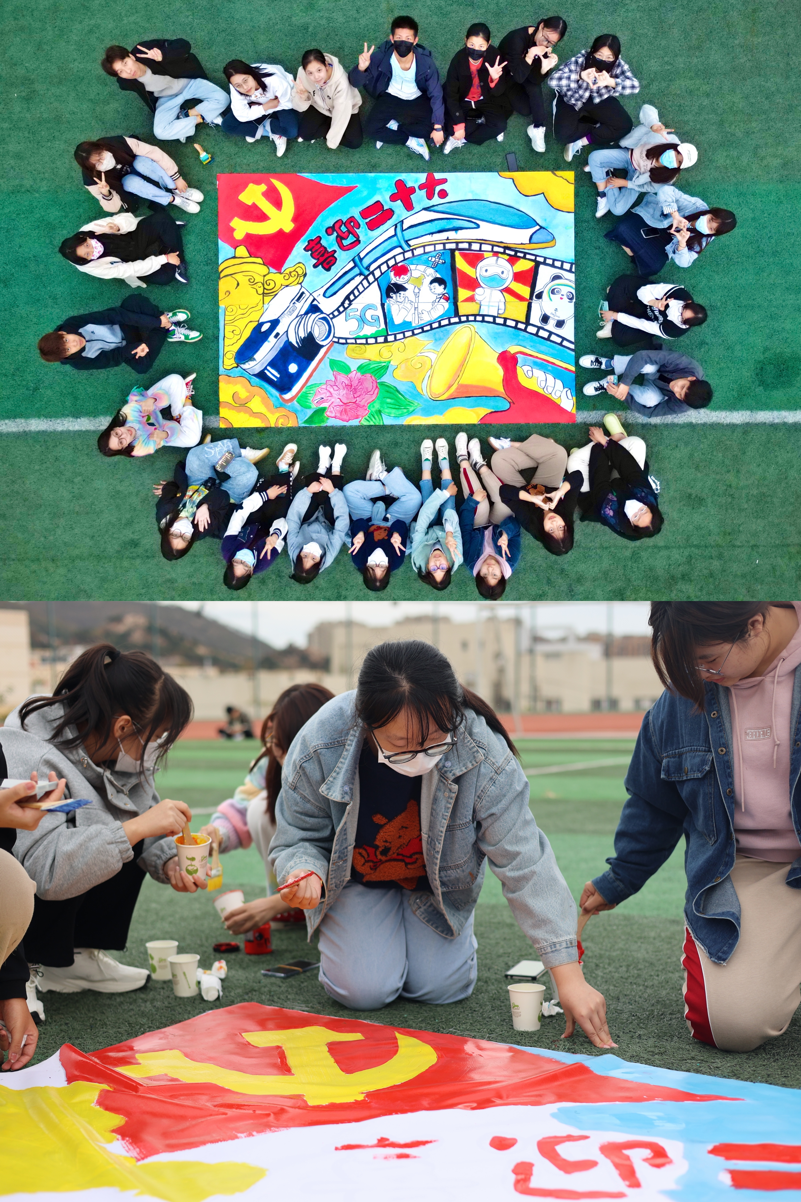 坚持以美育人、涵美润心,组织开展“共绘壮美山河,同谱盛世华章”逐梦心连心主题活动,活动以党的二十大报告中提到的各项成就与奋斗目标为切入点,全方位多维度展现新时代的伟大变革,现场参与者用画笔描绘新时代,记录新成绩,以青春之名书写清澈的爱,以手中颜料献礼五彩中华,臂画宏伟蓝图,通过一笔一画展现心中的无限自豪。此次活动将进一步引导青年学子在社会主义现代化新征程中勇立潮头,以扶摇直上的少年意气接过历史的接力棒,进一步为讲好中国故事、开好时代新局绘就更加亮丽的青春底色。