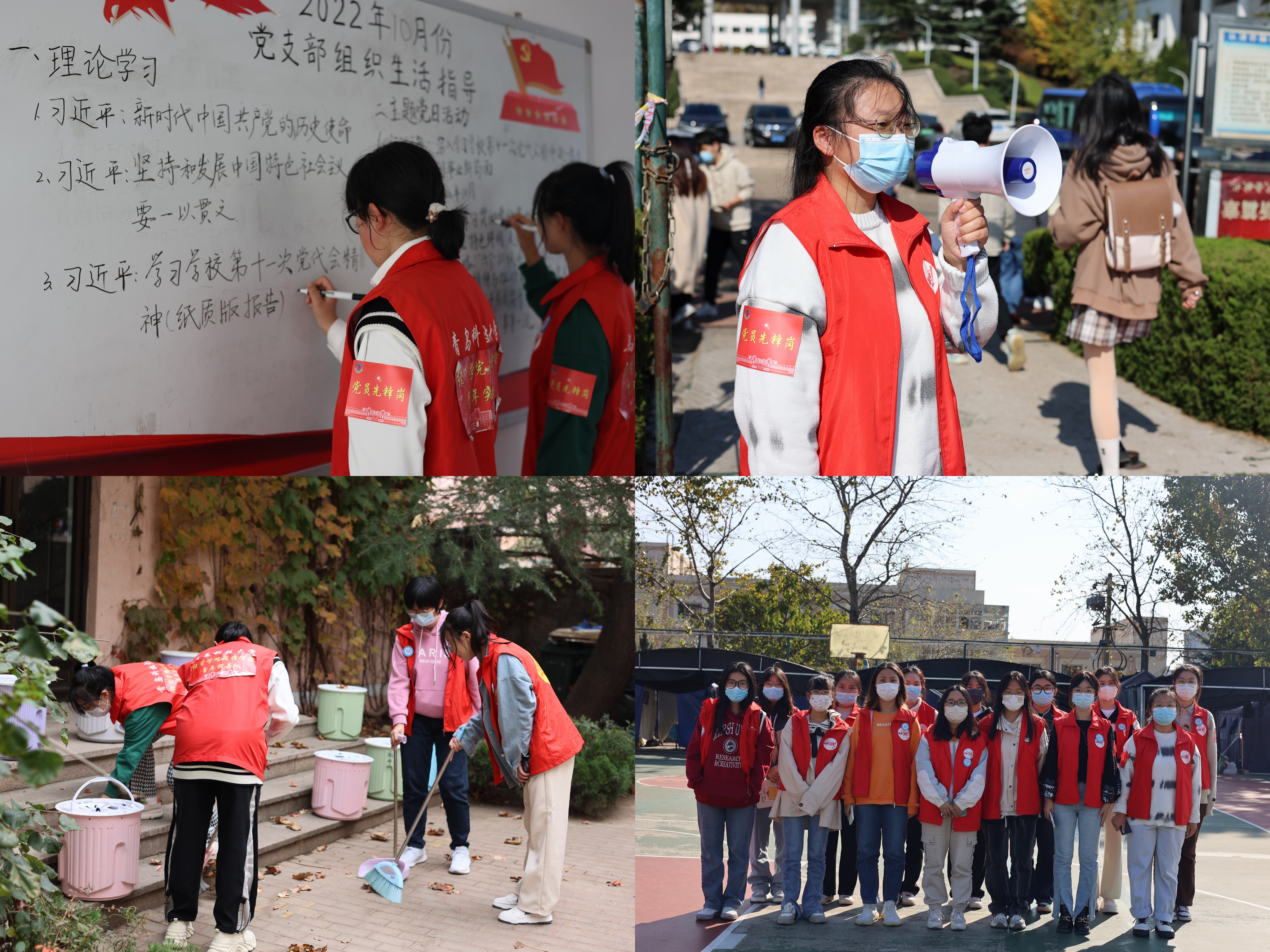 学生党支部组织开展“党员旗帜红”党员先锋岗志愿服务行动,多名党员、发展对象与积极分子踊跃参与到核酸检测志愿服务、校园秩序维护、楼层卫生清洁等各类志愿服务中来,以实际行动诠释党员带头示范作用及“奉献、友爱、互助、进步”的志愿者精神,以青年力量筑起校园生活安全屏障。