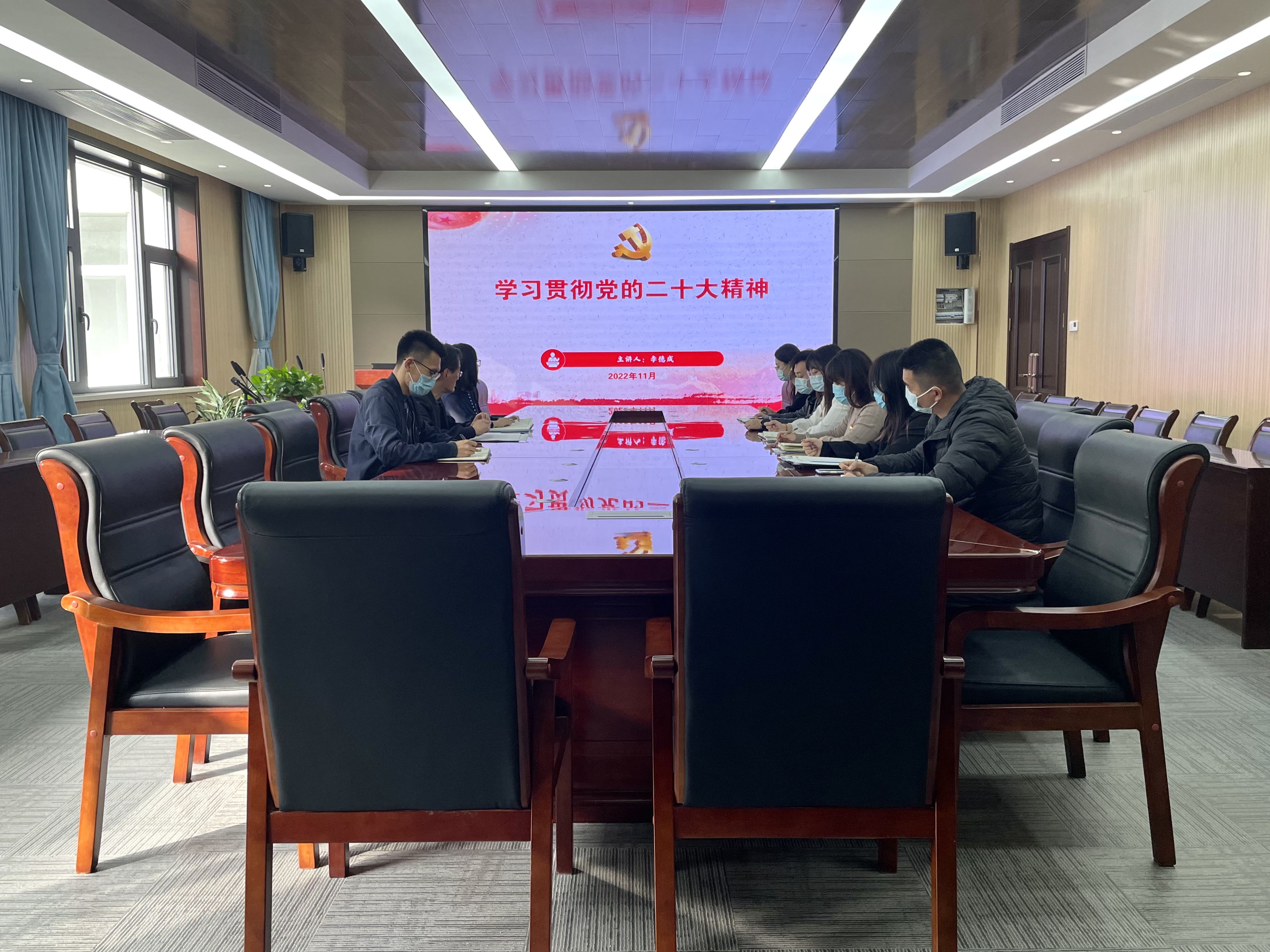 团委在经管楼313会议室召开党的二十大精神专题学习会议。学院党委书记李德成出席会议,团委书记王聪、团委副书记张显全及全体辅导员老师参加会议。