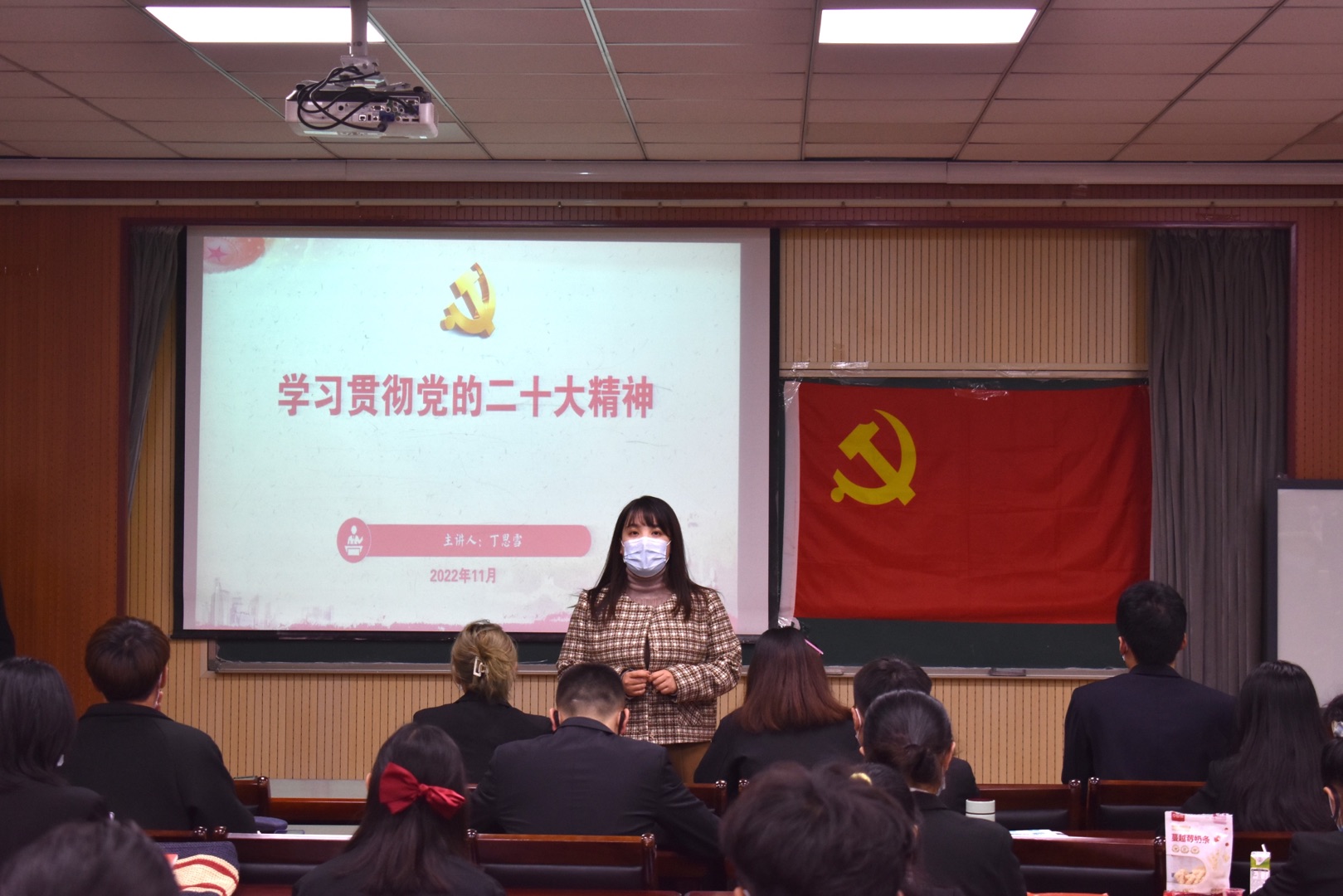 会议伊始,张鸣表示,全体学生党员要切实将思想、认识和行动统一到党的二十大精神上来,要原原本本、结合实践深入学习党的二十大报告,深刻领会丰富内涵、精神实质。随后,学生党支部集体学习党的二十大报告,进一步明确二十大提出的新思想、新论断、新要求,进一步增强坚定拥护“两个确立”、忠诚践行“两个维护”、时刻牢记“三个务必”的思想自觉、政治自觉、行动自觉,引导学生全面系统学、及时跟进学、深入思考学、联系实际学,以实际行动让青春在全面建设社会主义现代化国家的火热实践中绽放绚丽之花。
