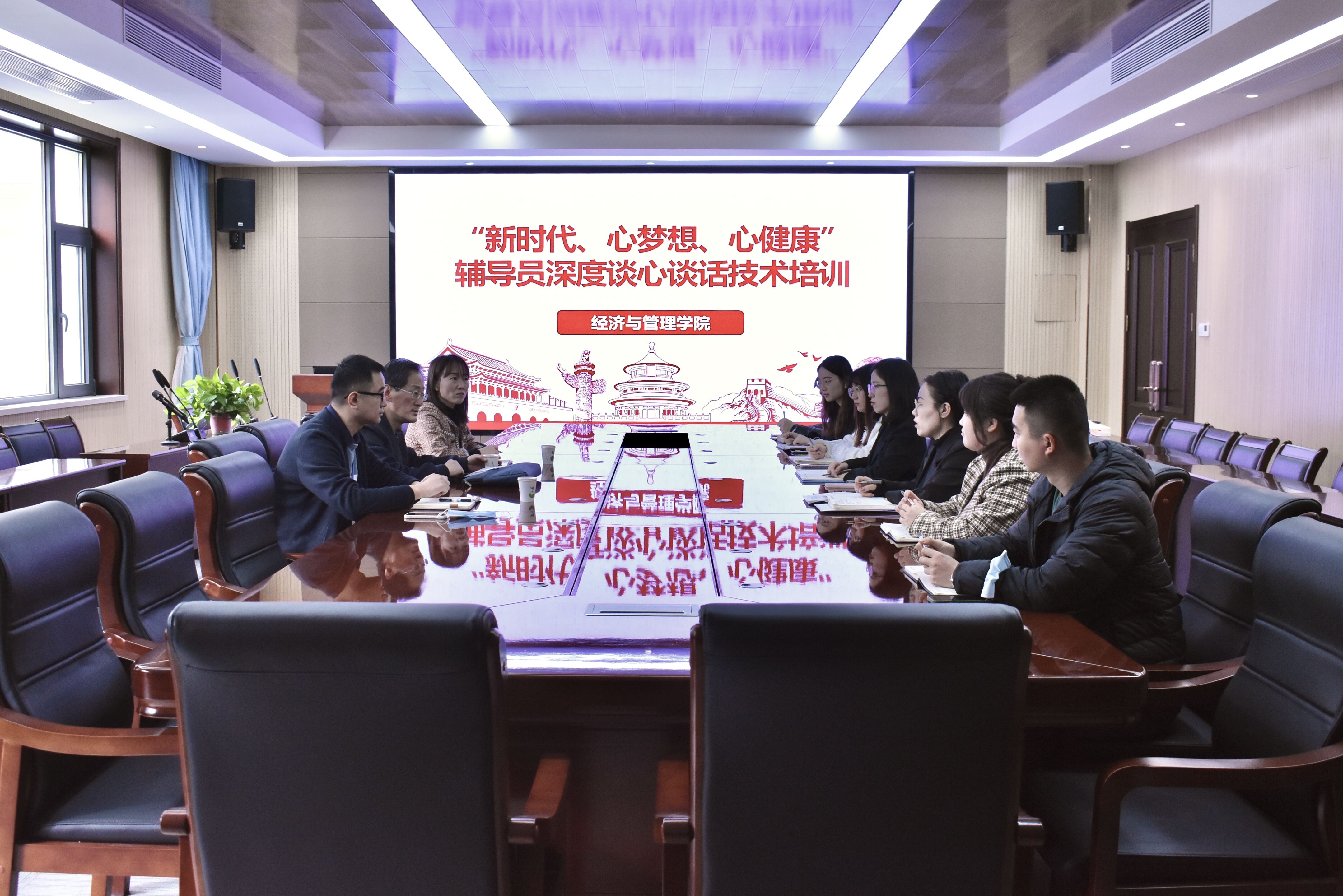 于经管楼313会议室组织开展“新时代、心梦想、心健康”学工队伍深度谈心谈话技术培训会,学院党委书记李德成出席会议,培训会邀请华人色情