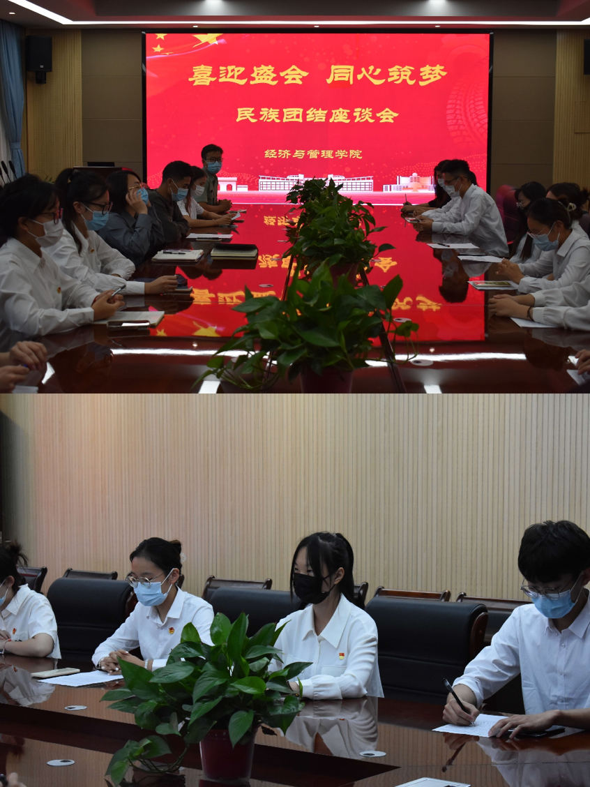 举办“喜迎盛会,同心筑梦”少数民族学生座谈会,不同民族、不同年级的学生代表敞开心扉、踊跃发言,从民族文化特色、个人成长经历等方面展开分享,对学校良好的学习氛围、和睦的民族团结氛围表达了热爱之情。学院教师代表在认真了解少数民族学生在校学习和生活情况后,勉励同学们要坚定理想信念,珍惜学习机会,铭记责任、增长本领,为实现中华民族伟大复兴奉献青春力量。