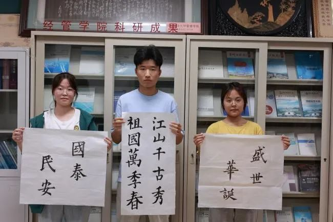 坚持以德立志、提智聚能、涵美润心,在二十大即将召开之际面向学院全体本科生、研究生征集书法作品,以笔墨共赞盛世华诞,以我心共书盛世华章。一横一竖,一撇一捺,顿下的是信念,回旋的是力量,勾勒的是当代青年对祖国母亲的无限热爱。经管学子们于书法的恢弘气势和雅致的艺术形式中厚植爱国情怀,担当青年使命,由内而外地表达自己对祖国繁荣昌盛的美好祝福。