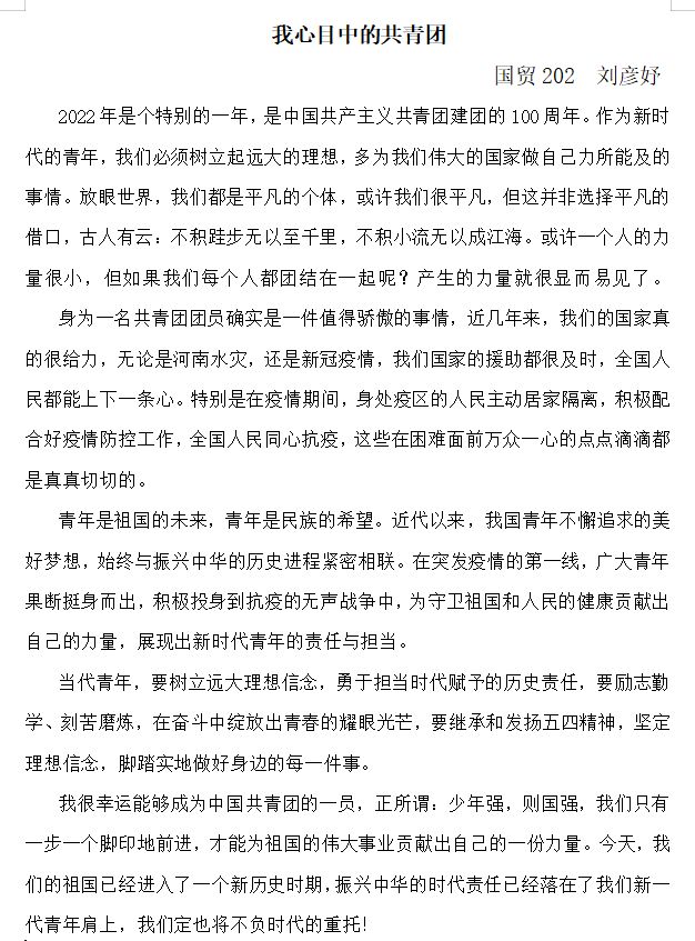 学生会开展“我心目中的共青团”主题征文比赛。学院学子积极参与,共收集作品200余份,并借此机会,抒发内心中对共青团的敬爱之情。