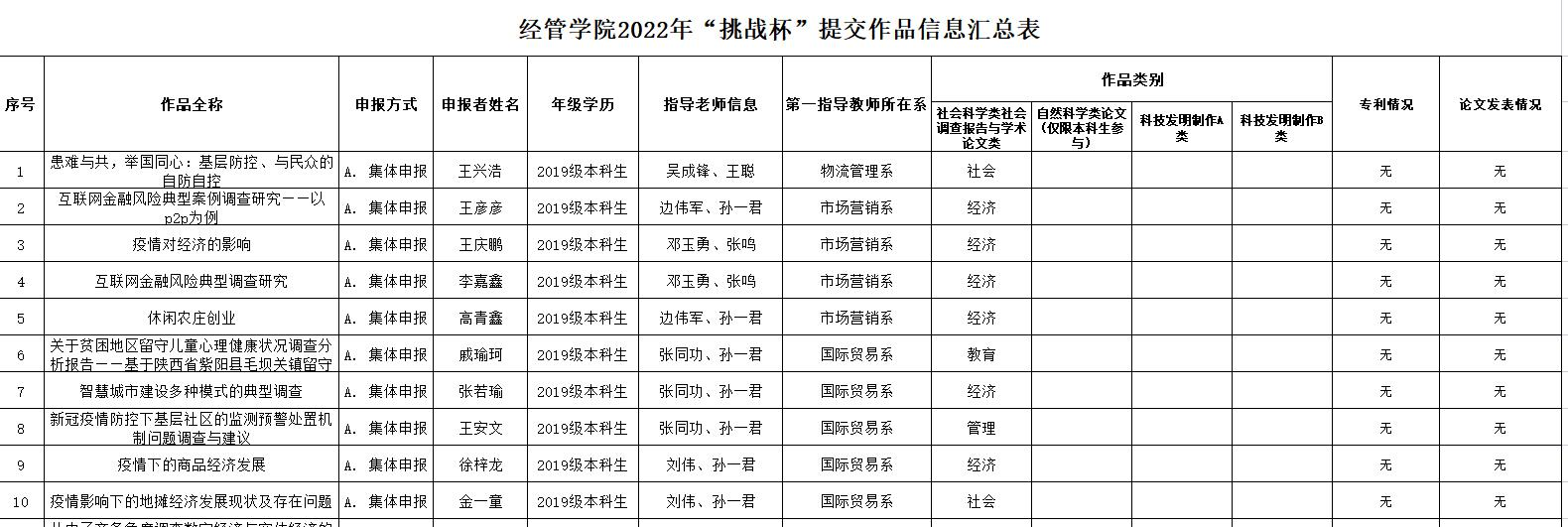 积极组织“挑战杯”大学生创新创业大赛选拔赛申报工作。
