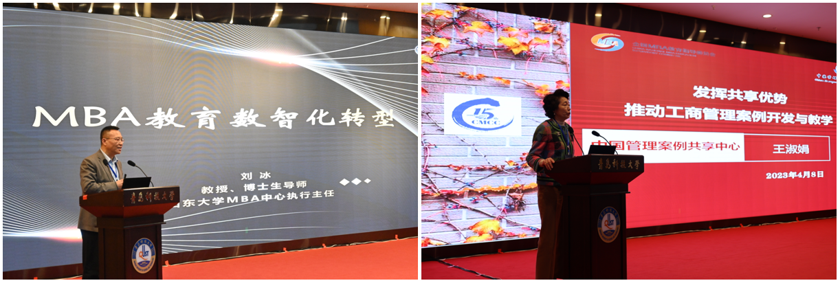 山东省MBA教指委秘书长,山东大学管理学院院长助理刘冰教授应邀作了题为《MBA教育的数智化转型》的报告。中国管理案例共享中心王淑娟副主任作了题为《发挥共享优势,推动工商管理案开发与教学》的报告。
