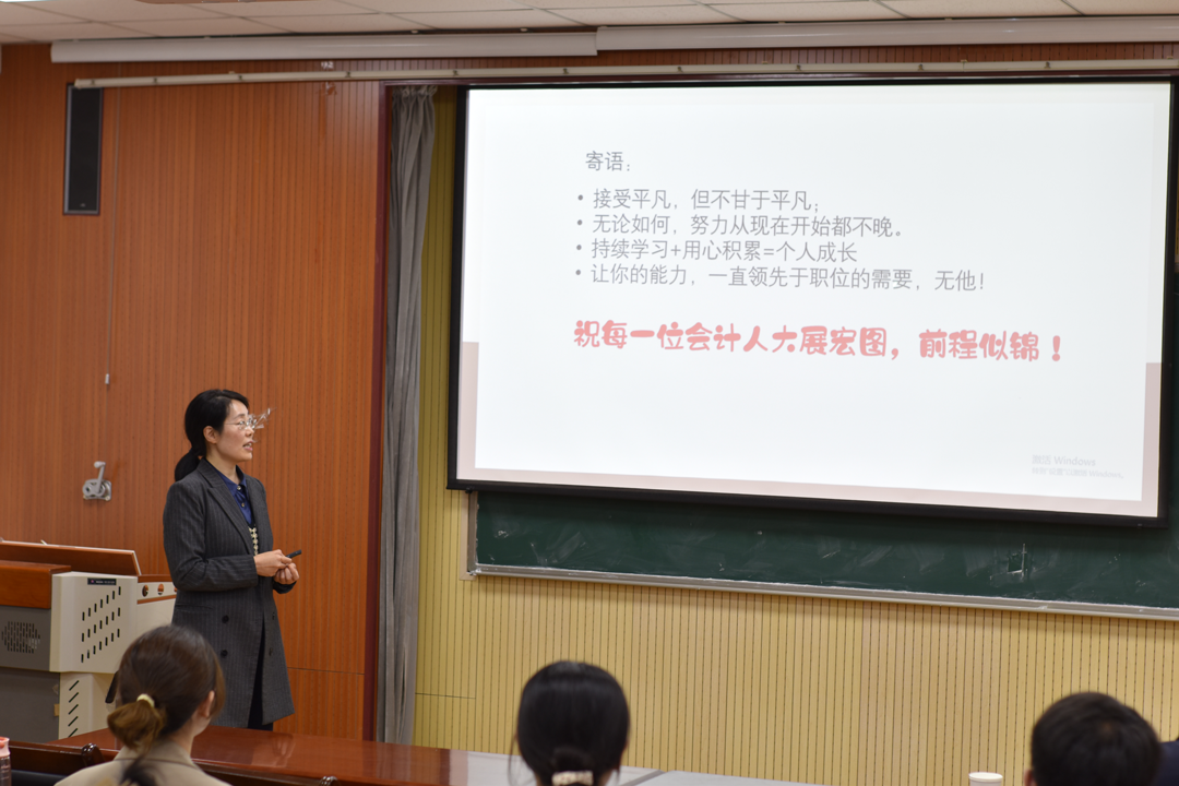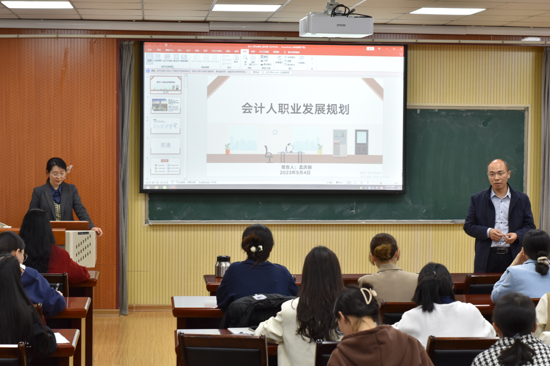 恰逢五四青年节,本期报告会我们邀请的是MPAcc校外导师、山东海洋物产有限公司副总经理孟庆丽女士。孟老师是正高级会计师、山东高端会计人才、青岛市蒲公英公益慈善服务中心秘书长。本次活动由MPAcc教育中心主任于培友老师主持。2022级MPAcc全体同学以及其他感兴趣的同学到现场聆听了本次报告。