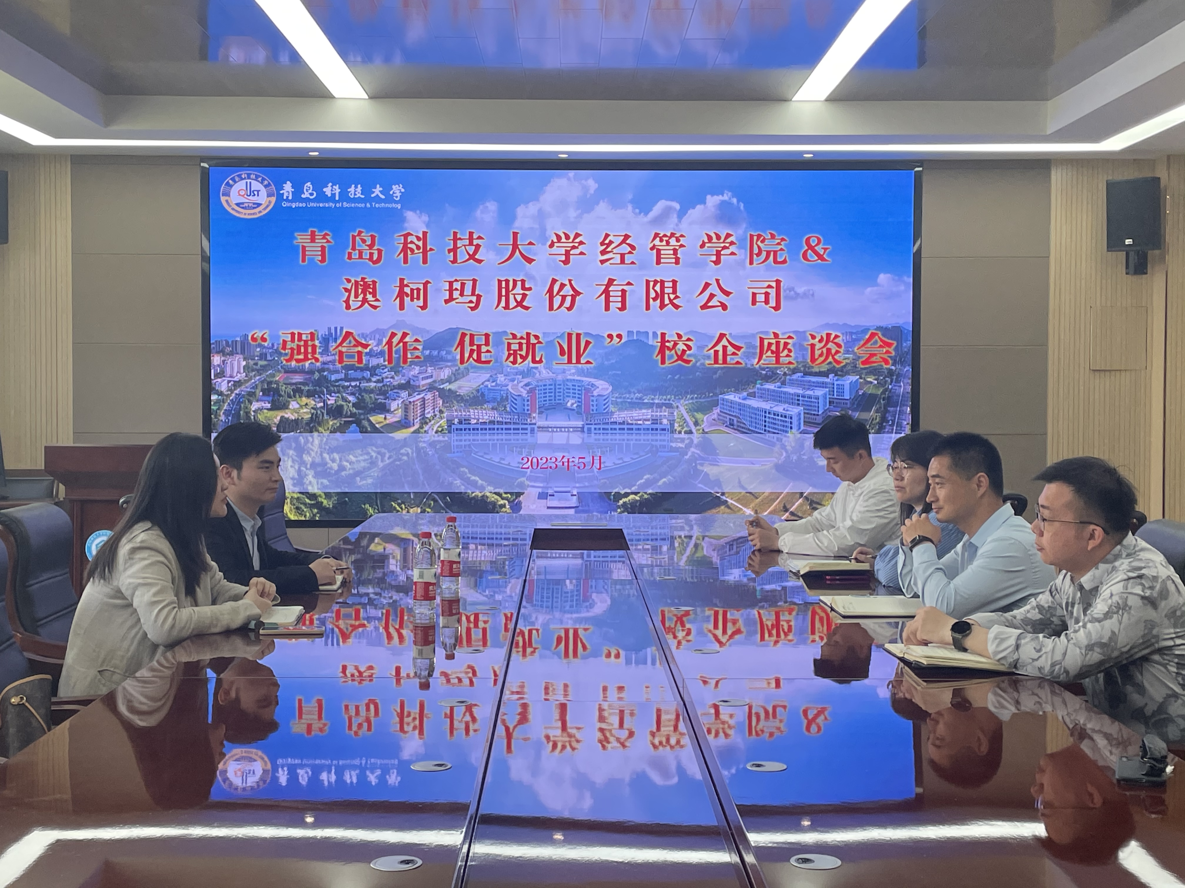 与澳柯玛股份有限公司于经管楼313会议室举办“强合作 促就业”校企座谈会,澳柯玛股份有限公司人力资源部副部长钱倩一行来校交流,探讨人才招聘、实习合作等相关事宜。学院党委副书记兼副院长牛宝卫,2023届毕业生辅导员孙一君,2024届毕业生辅导员付凯、袁绍正参加座谈会。
