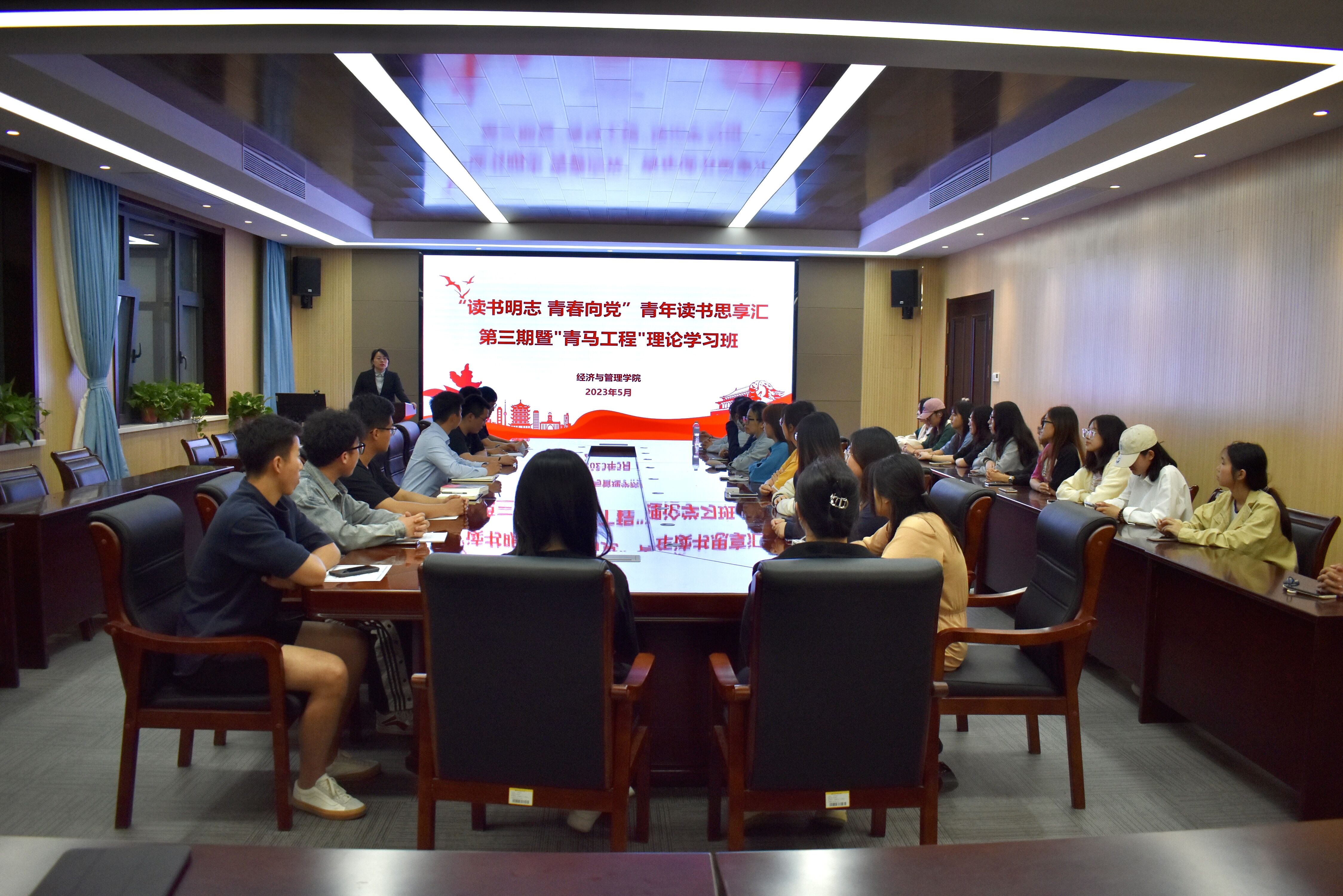 为深入学习领会习近平总书记在学习贯彻习近平新时代中国特色社会主义思想主题教育工作会议上的重要讲话精神,深刻认识开展主题教育的重要意义,5月23日晚,经管学院团委于经管楼313会议室组织举办“读书明志 青春向党”青年读书思享汇第三期暨"青马工程"理论学习班。学院学生会指导老师付凯、袁绍正与全体学员共同参与了此次学习班,引导青年学生在理论学习中接受党性教育,感悟思想伟力,锤炼实践力量。