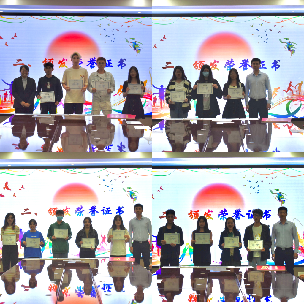 会议伊始,在场师生共同回顾了我院师生在校运动会上的精彩瞬间,主持人对在校运动会上表现优异的运动员提出赞扬,随后宣读了获得文体标兵和先进个人获奖名单,并对他们表示热烈祝贺。接下来,付凯、袁绍正老师为获奖同学颁发荣誉证书并合影留念,对在校运动会上奋勇拼搏,表现优异的同学提出鼓励。随后,袁绍正老师说到,他充分肯定运动员在赛场上的努力,正是运动员们的艰苦训练,为学院在本届运动会上取得了骄人的成绩,同时也对运动员、教练员、志愿者的共同的努力与付出表示感谢。大会最后,付凯老师进行总结,她讲到,希望受到表彰的同学能够继续发扬顽强拼搏的精神,在以后的学习生活中继续热爱体育运动,在体育赛事中不断超越自己。