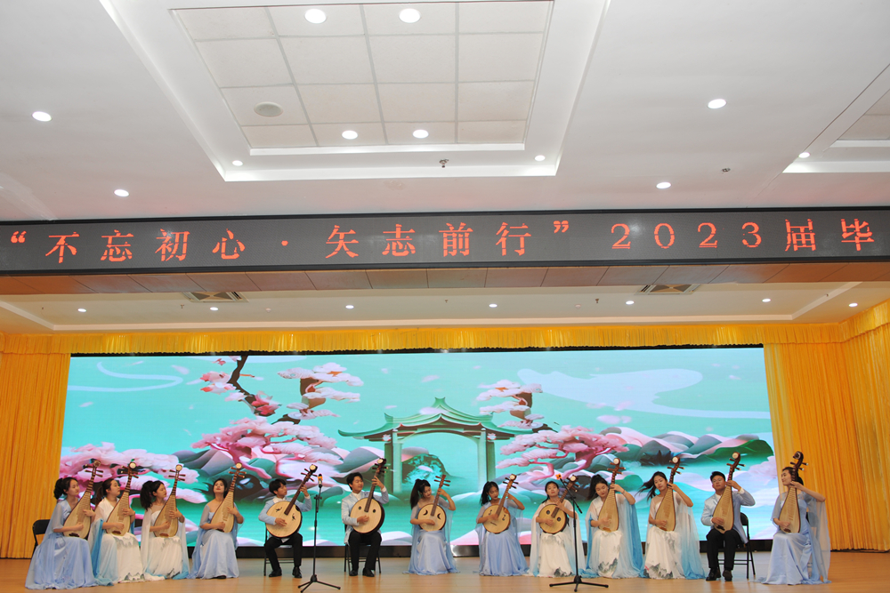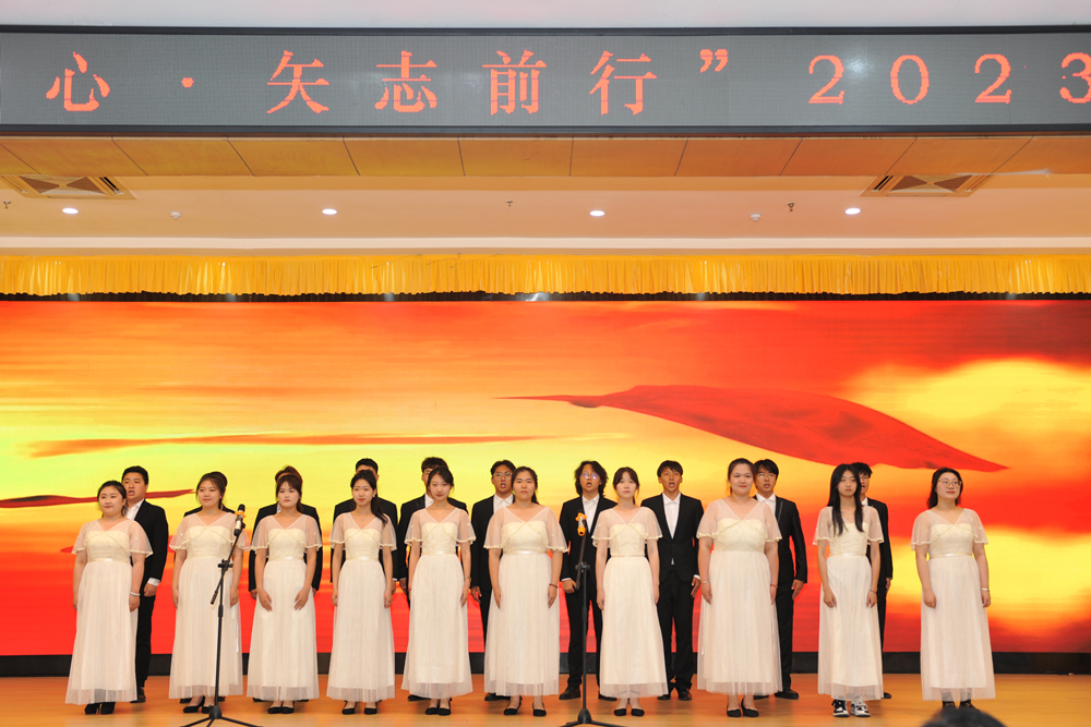 用音乐讲述党史,用歌声礼赞党恩。此次“2023届毕业生思政课”以“不忘初心·矢志前行”为主题,分为《序章“青春之我”》《立大志有理想“我们都是追梦人”》《明大德敢担当“我将无我不负人民”》《能吃苦成大才“每个人都了不起”》《肯奋斗担大任“撸起袖子加油干”》《尾声“青春向党”》六个部分,通过“串讲人讲解+红色电影经典片段赏析+经典音乐作品讲述+现场歌曲演奏”,巧妙将党的二十大精神和党的创新理论、中国共产党人的精神谱系融入其中,用艺术的语言宣讲红色文化和榜样的力量。