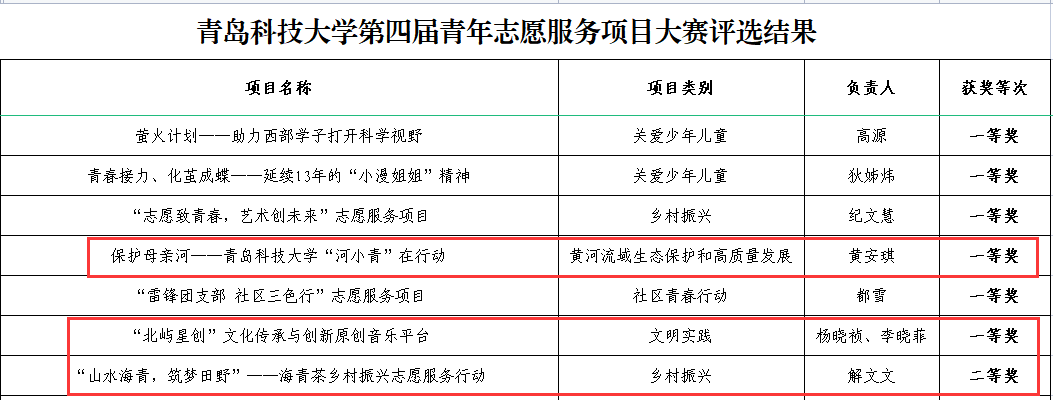 ‘河小青’在行动、“北屿星创”文化传承与创新原创音乐平台项目荣获一等奖,“山水海青,筑梦田野”——海青茶乡村振兴志愿服务行动项目荣获二等奖,同时,以上3个志愿服务项目均成功推荐至省赛。