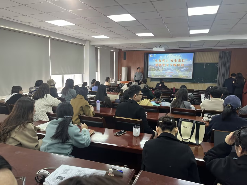 分工会邀请璟安消防苏教员在经管楼419举行“生命至上 安全先行”消防安全专题培训,全体教职工参加。