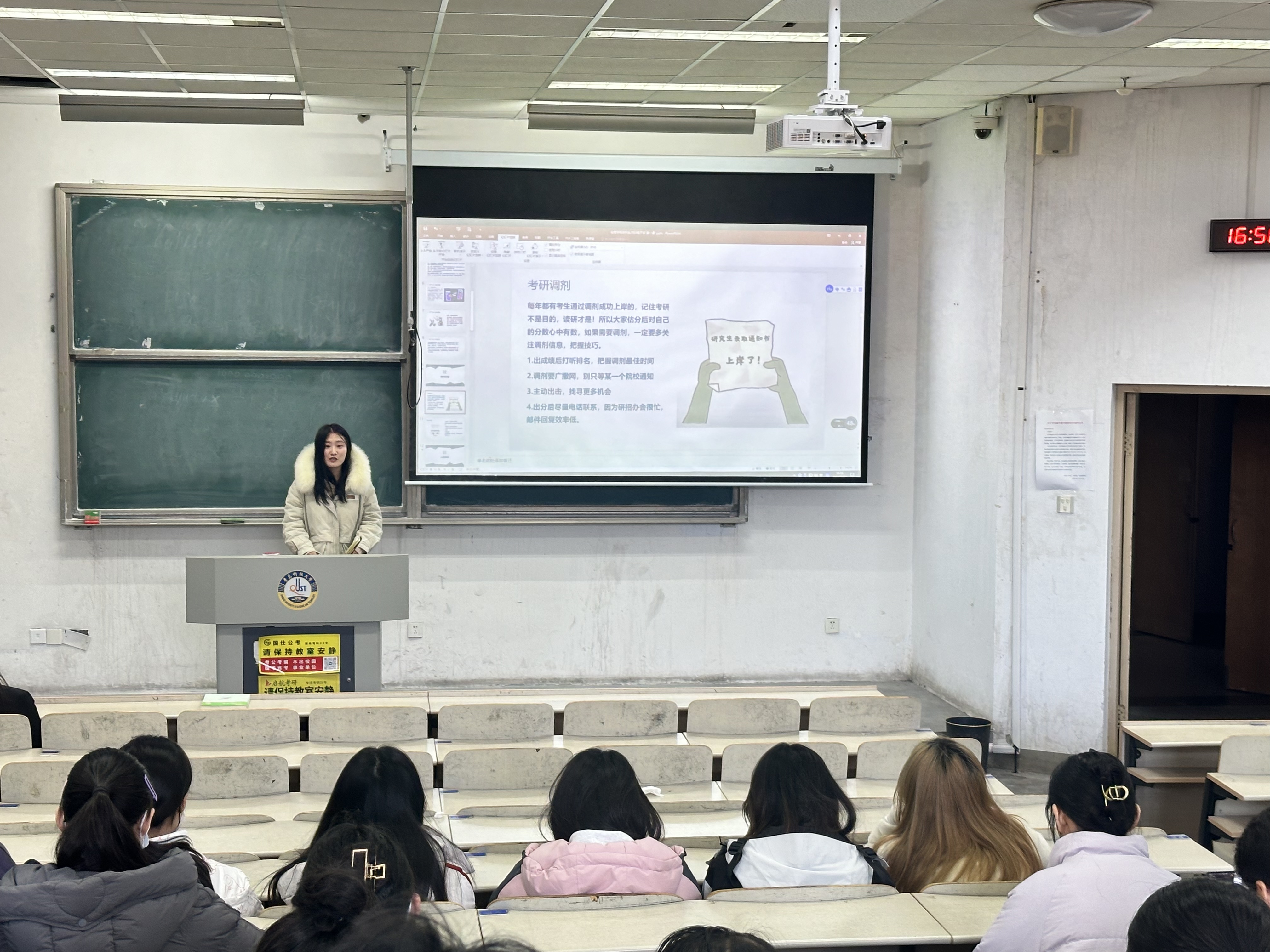 会议开始,付凯老师从“就业冲刺”“考研调剂”两个方面着力,为毕业生同学分析了当前的就业形势,提供了实用的就业技巧和策略,并对就业签约流程做出了详细的解释。她强调,毕业生们应充分了解就业政策,熟悉就业流程,做到心中有数,避免在就业过程中走弯路。同时为准备考研调剂的同学注入了强心剂,鼓励同学们调整心态、主动出击。随后,兼职辅导员孟书冰从安全保障、心理调适出发,结合校园案例,特别指出了消防安全的重要性,尤其是校内电动车使用安全问题,同时,现场教给了同学们一些心理调节的实用方法,帮助同学们在紧张的毕业季缓解焦虑、提升信心。