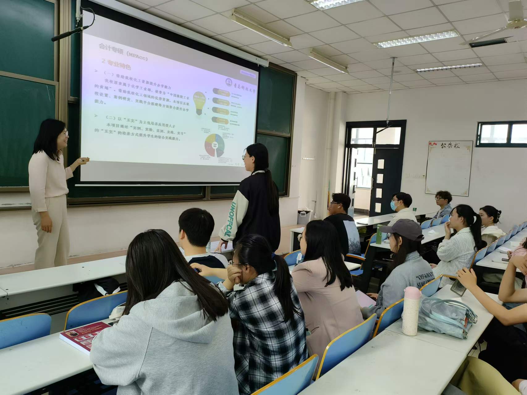 硕士研究生招生宣讲会在烟台大学和山东工商学院顺利举行。我院研究生招生宣讲团成员MBA教育中心马燕老师详细介绍了学校以及学院的发展情况、学院招生优惠政策、学院各研究生招生专业的基本情况、专业特色和近三年的录取情况。
