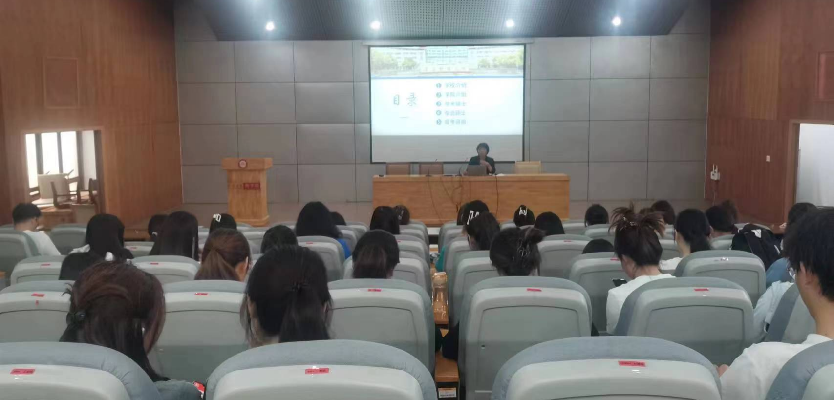 杨继梅主任在硕士研究生招生宣讲会上,详细介绍了学校以及学院的发展情况、学院招生优惠政策、学院各研究生招生专业的基本情况、专业特色和近三年的录取情况。