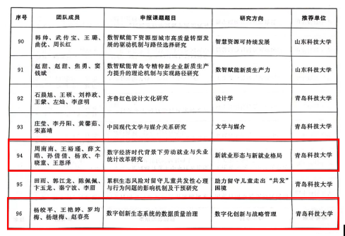近日,青岛市社会科学界联合会公布了青岛市哲学社会科学青年人才团队名单,我院周南南老师和杨皎平老师申报的团队成功入选。