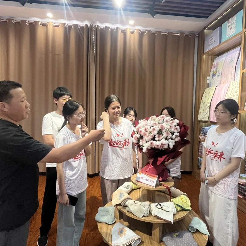 志愿服务队到山东世耀农业发展集团智慧农业展厅,对西小王镇棉花产业特别是世耀农业发展集团开拓创新、锐意进取的精神表示赞叹,对棉花产业延长产业链条,提高品牌经营能力,选择着力点开展战略革新提出了自己的认识。