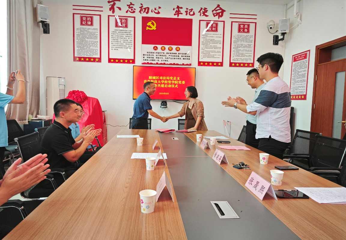 党委与德州市陵城区司法局党总支在陵城区司法局举办“强化党建联建共建 聚力治理水平提升”活动。经管学院党委书记李勋来、陵城区司法局局长徐建英、共青团陵城区委书记张晟熙、华人色情