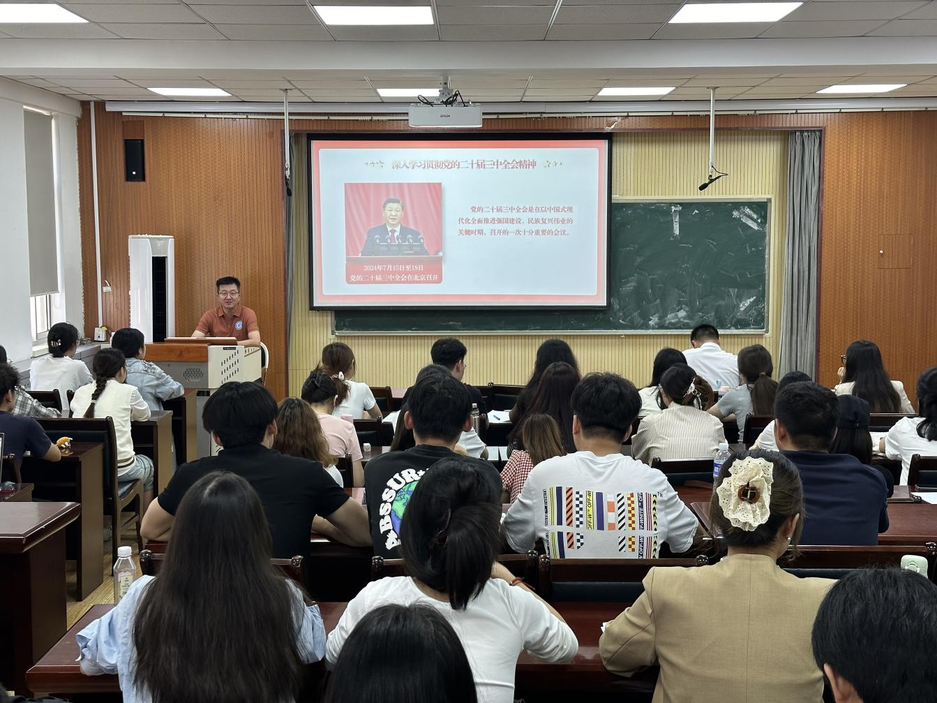 为深入学习贯彻党的二十届三中全会精神,提高学生党员的责任与担当意识,推动学院教育教学与科研工作的创新发展,9月24日下午,学院院长吕承超为研究生第一、第二党支部全体党员讲党课,我院所有研究生党员参加了本次活动。党课由党委副书记兼副院长牛宝卫主持。