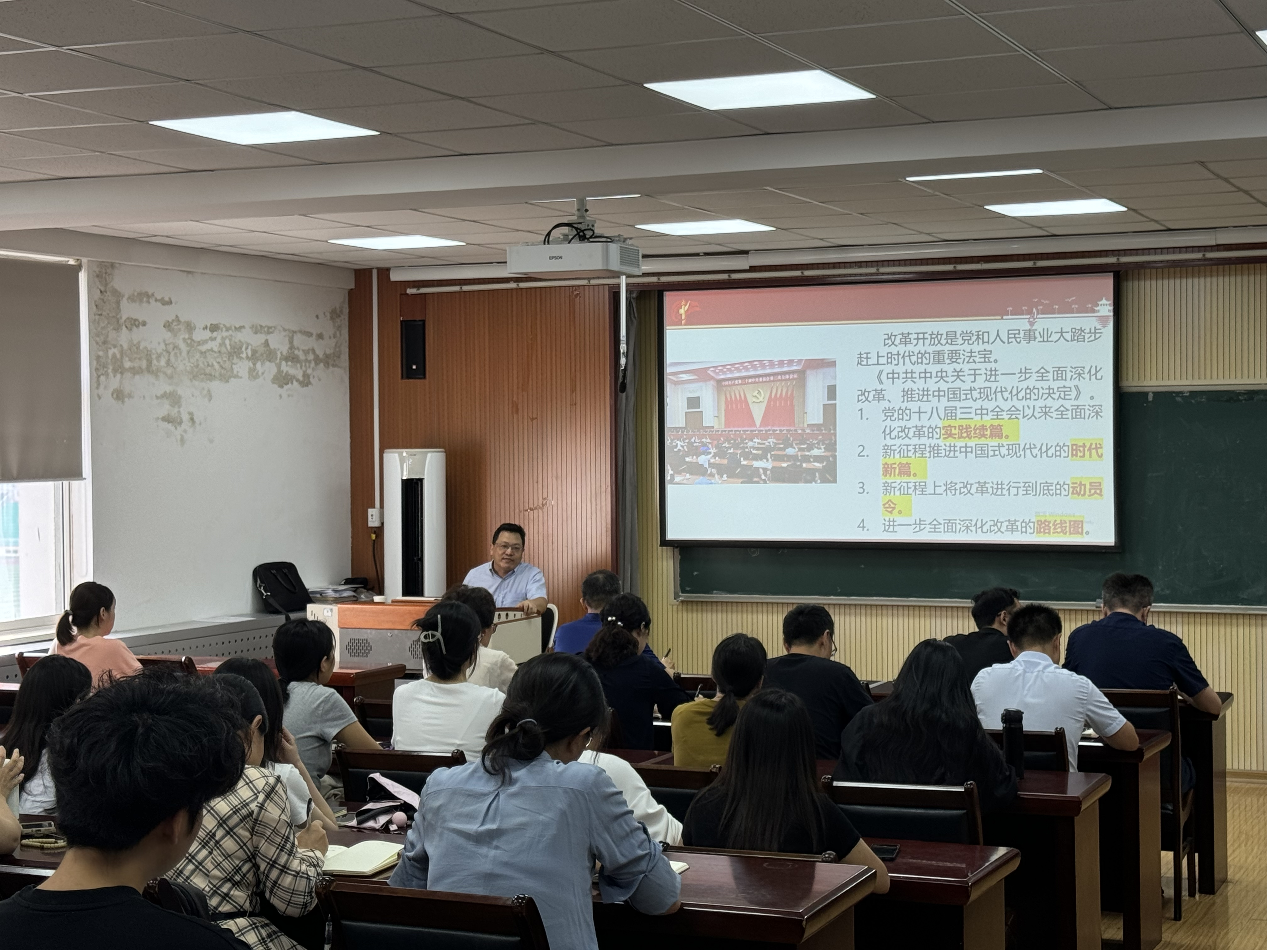 党委举办党的二十届三中全会精神学习报告会,邀请青岛市委党校李光全教授作题为《进一步全面深化改革,推进中国式现代化——深入学习贯彻党的二十届三中全会精神》的报告。学院全体教职工党员、学生党员、积极分子代表参加会议,会议由学院党委书记李勋来主持。