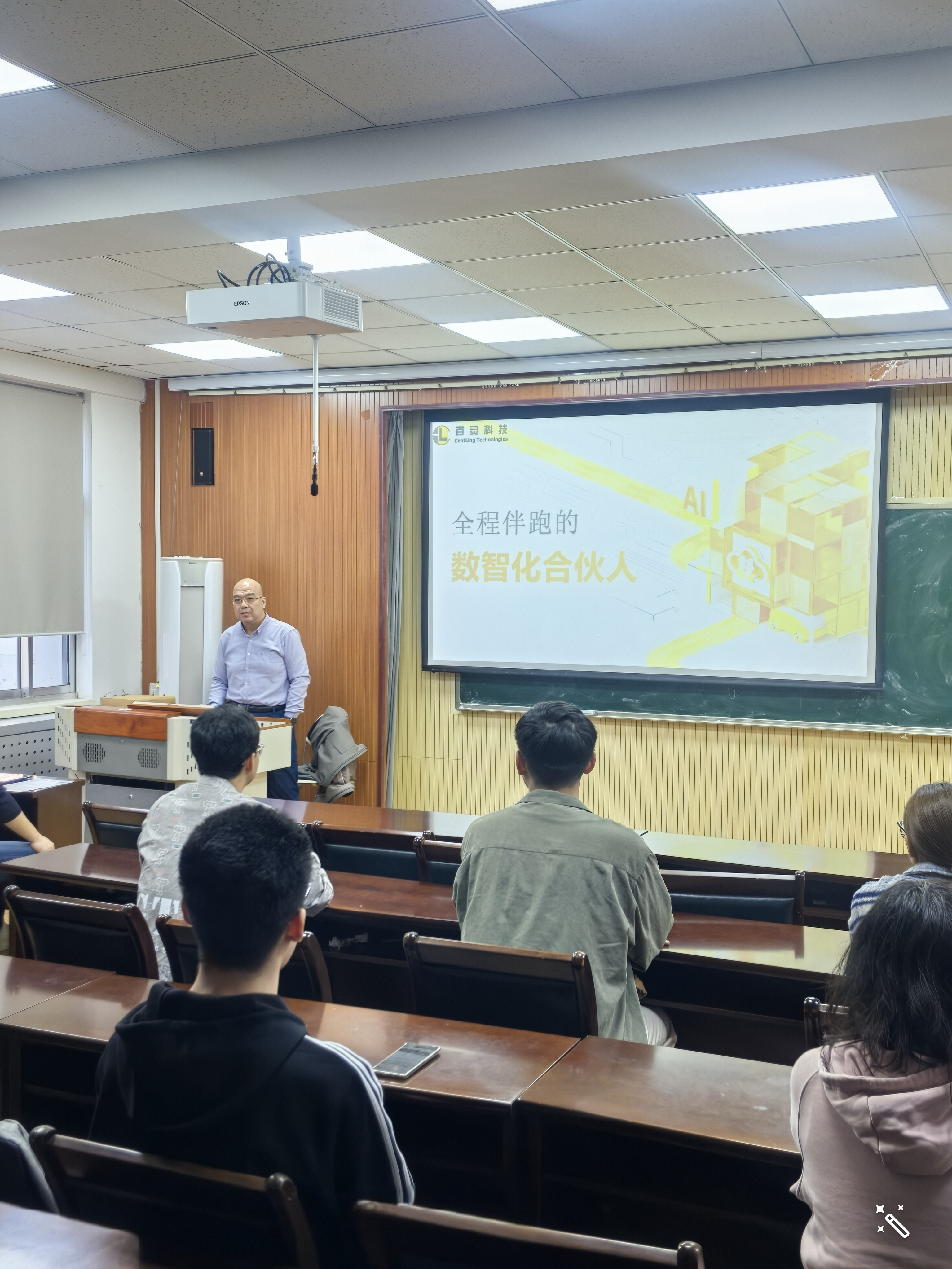 在经管楼419召开就业引航宣讲会,宣讲会由青岛百灵科技人力资源校园招聘负责人主讲,2025届毕业生参加活动,会议由2021级辅导员王嵩主持。