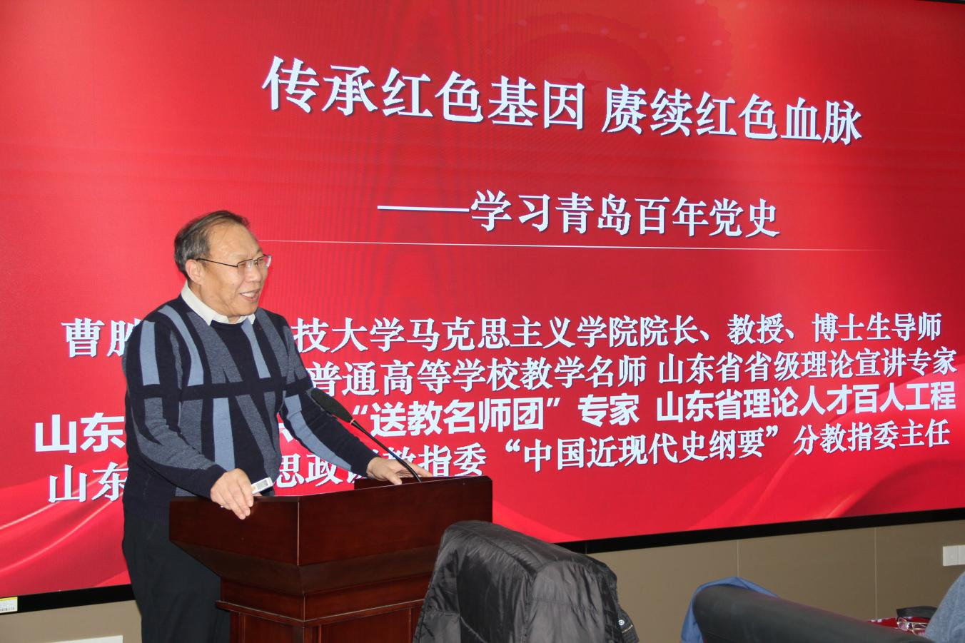 活动邀请马克思主义学院院长曹胜为党员讲授《传承红色基因 赓续红色血脉-学习青岛百年党史》党课,全体党员认真学习青岛党史发展,感悟党史精神,牢记英模事迹。会后,全体人员前往校史馆参观,在讲解员的引领下,大家认真、细致的观看了校史馆内的各类展品,一起重温科大自建校不断发展壮大的风雨历程,深切感受积淀深厚的科大精神。