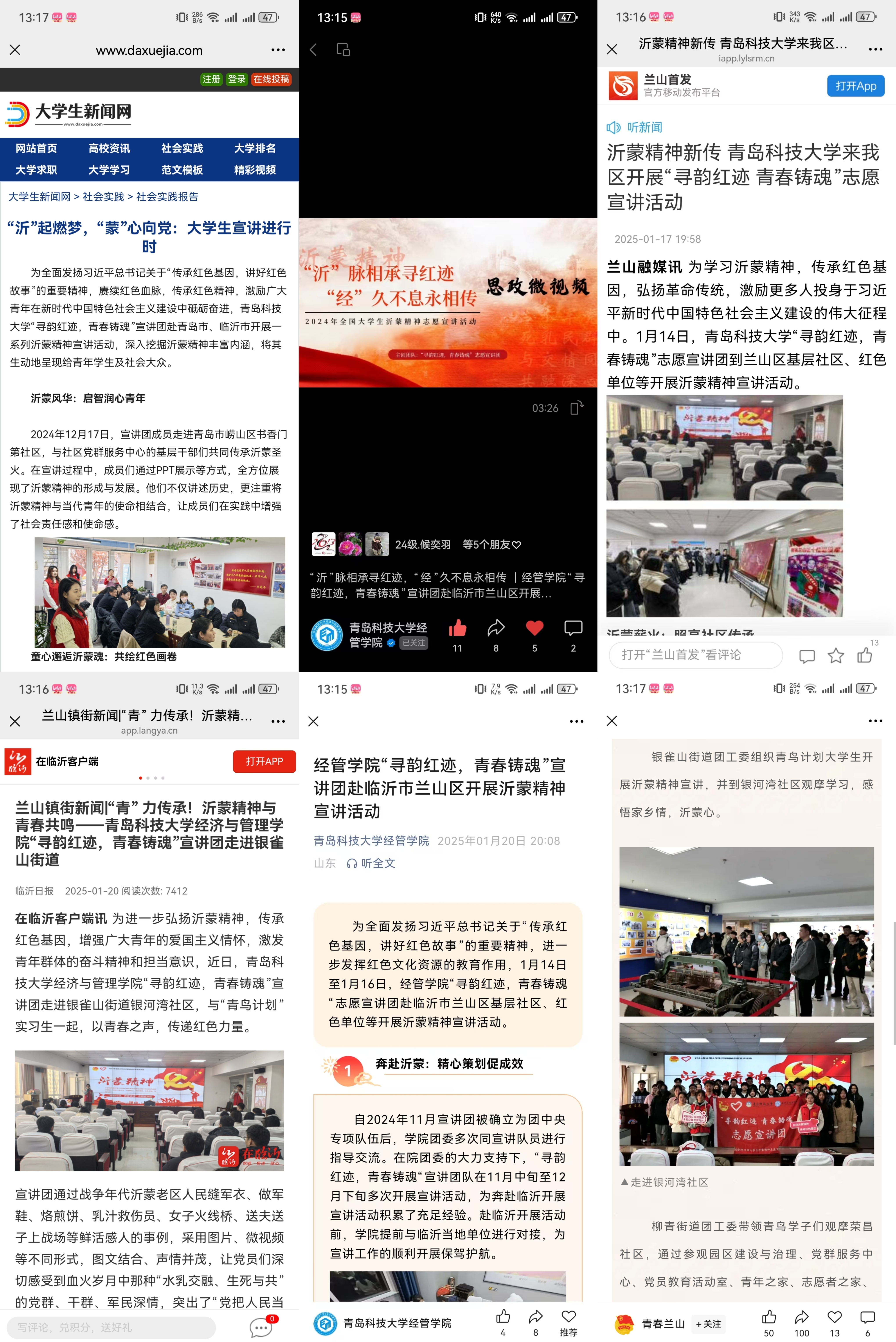 团委报道3篇,实践事迹累计被临沂日报、兰山首发、中青校园、大学生新闻网等主流媒体报道16篇次。实践活动的内涵丰富多彩,形式多种多样,旨在培养学生的综合素质,拓宽他们的视野,增强其社会适应能力。学生们在实践中积极参与社会服务和职业体验,在学术与实践、服务与奉献中不断成长,为未来的职业生涯和社会发展贡献自己的力量,充分展现经管学子的社会责任感和历史担当。