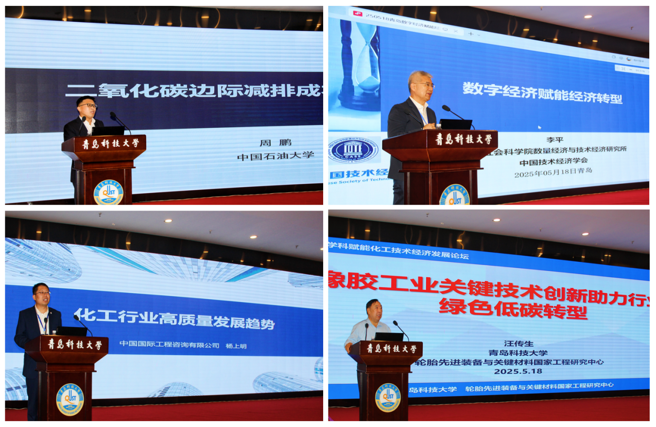 主旨报告环节,中国石油大学(华东)党委常委、副校长周鹏作了题为“二氧化碳边际减排成本研究进展”的报告;中国技术经济学会名誉理事长、监事长李平作了题为“数字经济赋能经济转型”的报告;中国国际工程咨询有限公司学术带头人杨上明作了题为“化工行业高质量发展趋势”的报告;轮胎先进装备与关键材料国家工程实验室主任汪传生作了题为“橡胶工业关键技术创新助力行业绿色低碳转型”的报告。