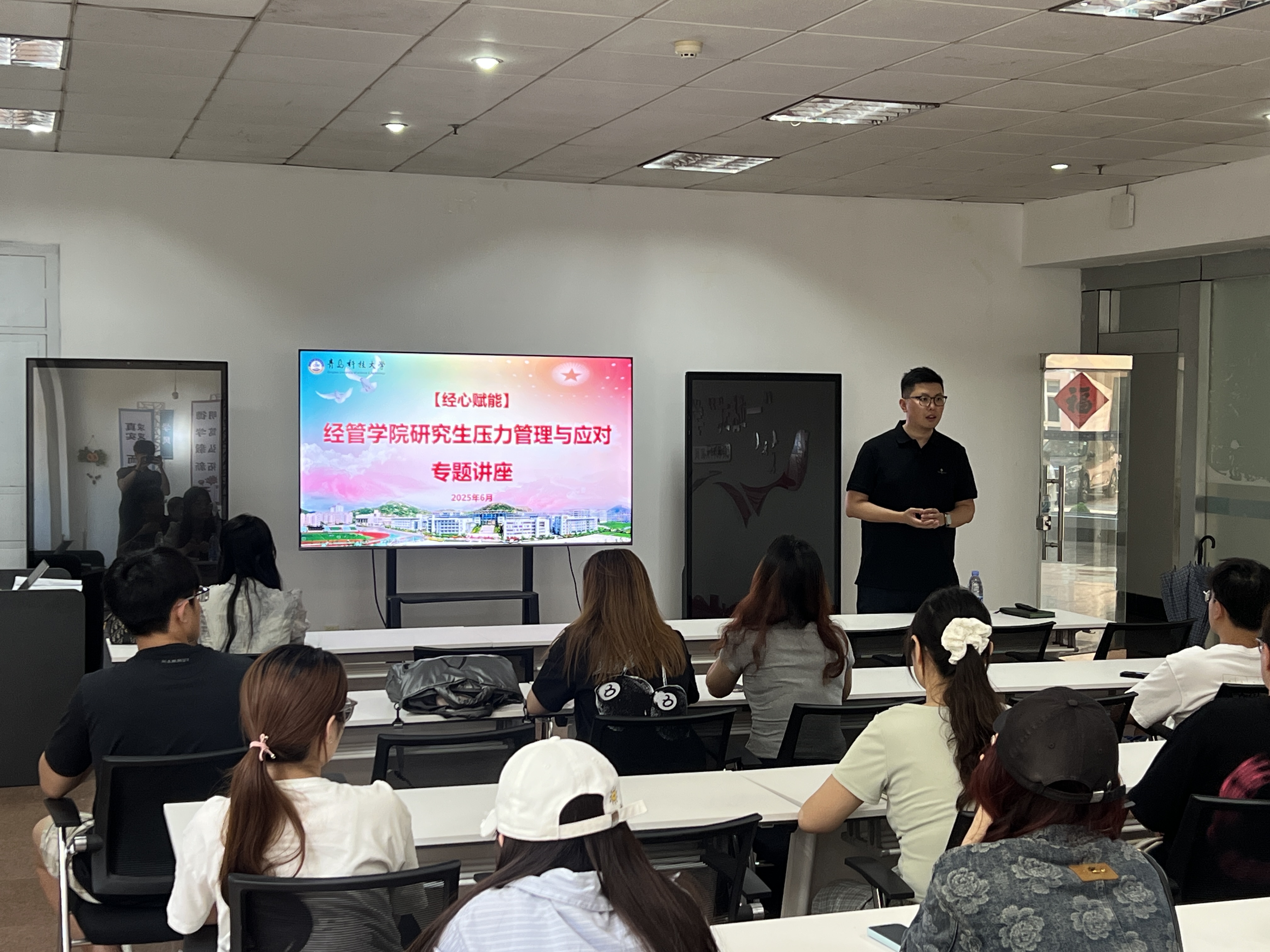 为缓解研究生在学术科研、宿舍关系、师生沟通及求职就业等方面的压力,经过前期充分的问卷调研和数据统计,学院于6月10号下午在一站式社区开展了经心赋能——研究生压力管理与应对专题辅导。学院团委书记兼学工办主任付继航主持,特邀校心理咨询中心专职教师张岍担任主讲嘉宾,以创新的互动形式和巧妙的讲授技巧,为学院研究生送上了一场缓解心灵压力的“甘霖”。