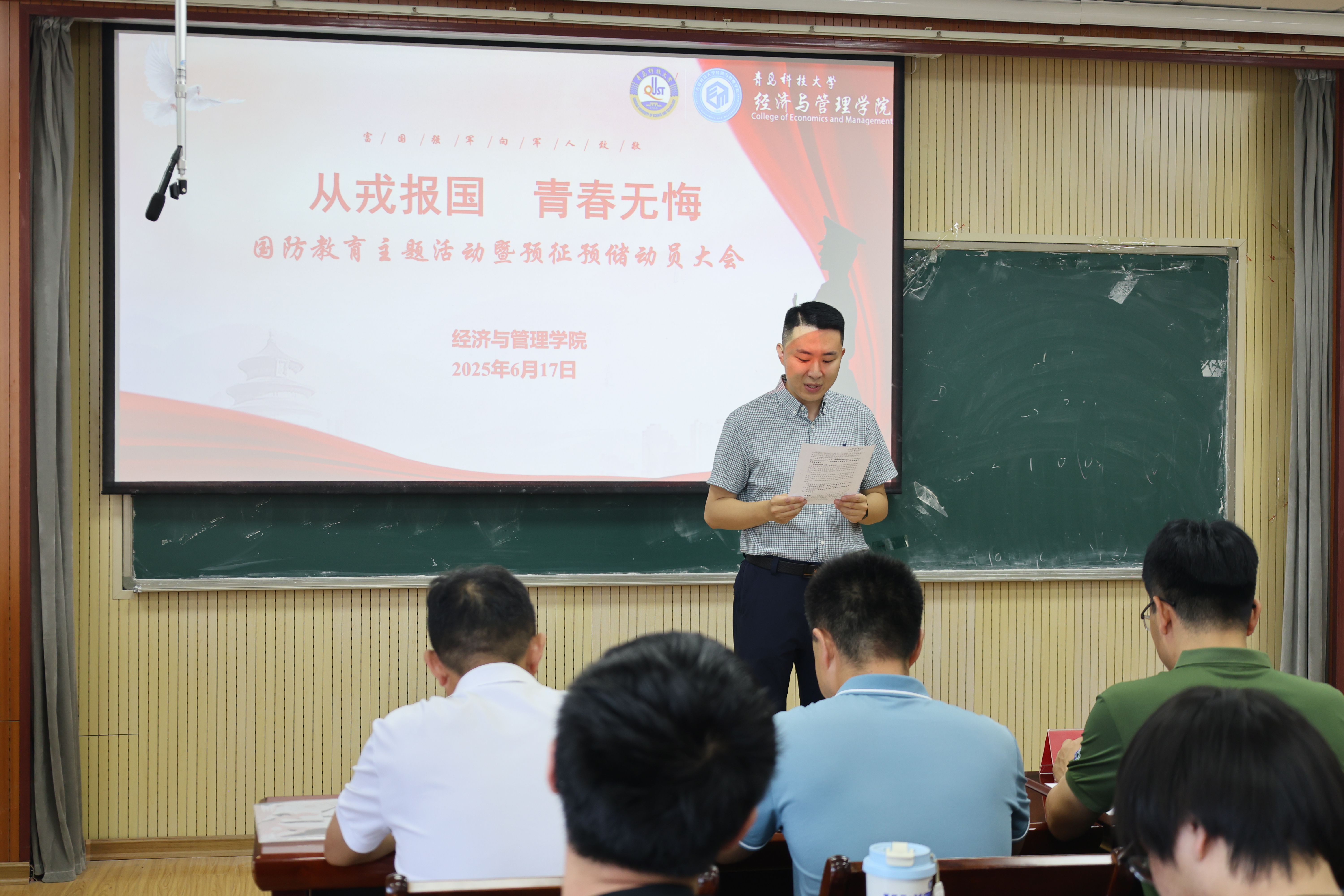 举办“从戎报国 青春无悔”国防教育主题活动暨预征预储动员大会。校党委学生工作部副部长兼武装部副部长李春家、学院党委副书记兼副院长牛宝卫、辅导员及22级本科生参加活动。