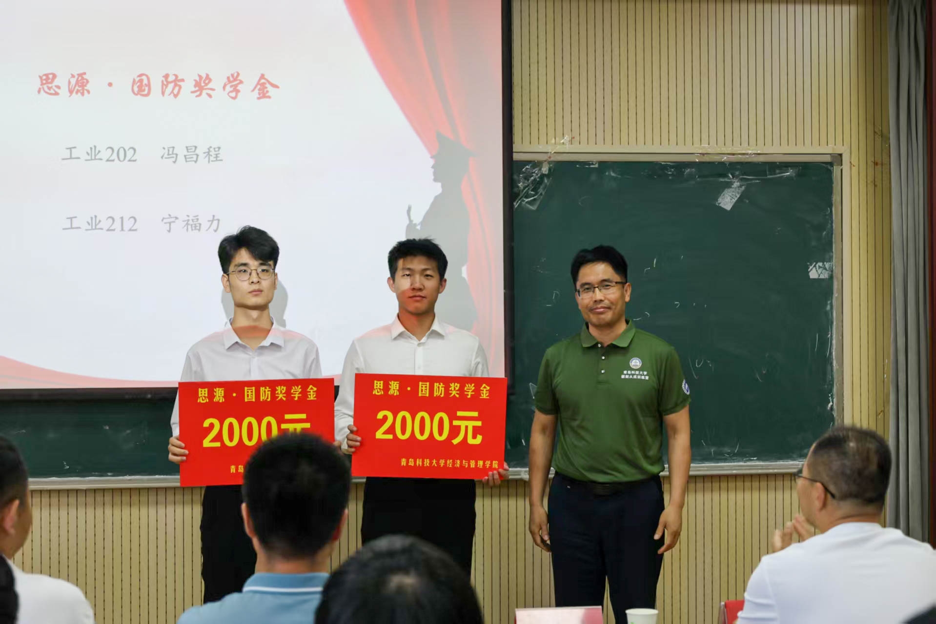 此次活动邀请了市南区湛山街道盐城路社区的退伍老兵王继东、退伍复学大学生22级工程硕士王浩做征兵示范宣讲,23级金融专硕刘新悦讲授“爱我国防”主题微团课,并为近期成功入伍的优秀学生冯昌程、宁福力颁发华人色情