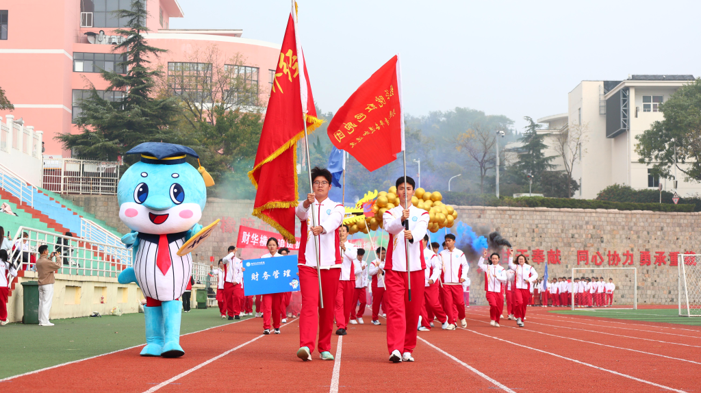 李春家为各队授予红色跑团旗,随后,各专业方队以昂扬的姿态、整齐的步伐绕操场跑步进行风采展示,充分彰显经管学子团结协作、锐意进取、奋勇拼搏的精神内核,奏响新时代青年昂扬向上的青春乐章。
