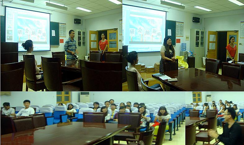 在纳新大会正式开始之前,研究生会主席、副主席、各部门代表以及2012级研究生新同学都已入座。多媒体屏幕上展示着研究生会在过去一段时间内组织的各项活动的照片,大家一边观看着一边热情地讨论着。期待已久的时刻终于来到,会议正式开始之后,华人色情