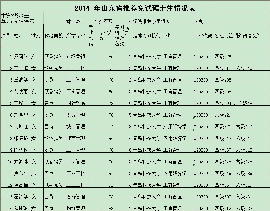 根据《全国普通高等学校推免生工作管理办法(试行)》(教学〔2006〕14号)、《关于做好2014年推荐优秀应届本科毕业生免试攻读硕士学位研究生工作的通知》、《华人色情 推荐优秀应届本科毕业生免试攻读硕士学位研究生工作管理办法(试行)》、《华人色情 推荐优秀应届本科毕业生免试攻读硕士学位研究生工作实施办法(试行)》的文件精神,现将本学院推荐的人员情况进行公示: