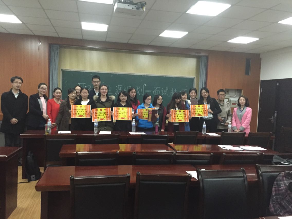 交流会分为两个部分:第一部分是面试技巧心得分享;第二部分是模拟面试比赛。第一部分的面试技巧心得分享是由各位经历过银行、学校以及大中型企业面试的研三优秀应届毕业生分享面试中宝贵的亲身经历、接受的深刻教训以及心得体会。第二部分的模拟面试比赛环节是:两位老师和在企业从事人力资源的我校毕业生担当评委,研一研究生进行压力面试和无领导小组讨论两轮面试,评委们分别就面试者的表现打分并给予评价。董老师建议研究生们面试前要对自己求职的岗位有所研究并具备相应的素质、通过长期积累培养自信心从而轻松应对面试等。逄老师建议大家面试首先要呈现一份有亮点的简历等。企业的HR对大家细节地方提出建议,例如不要口头语、可以借助肢体语言等。