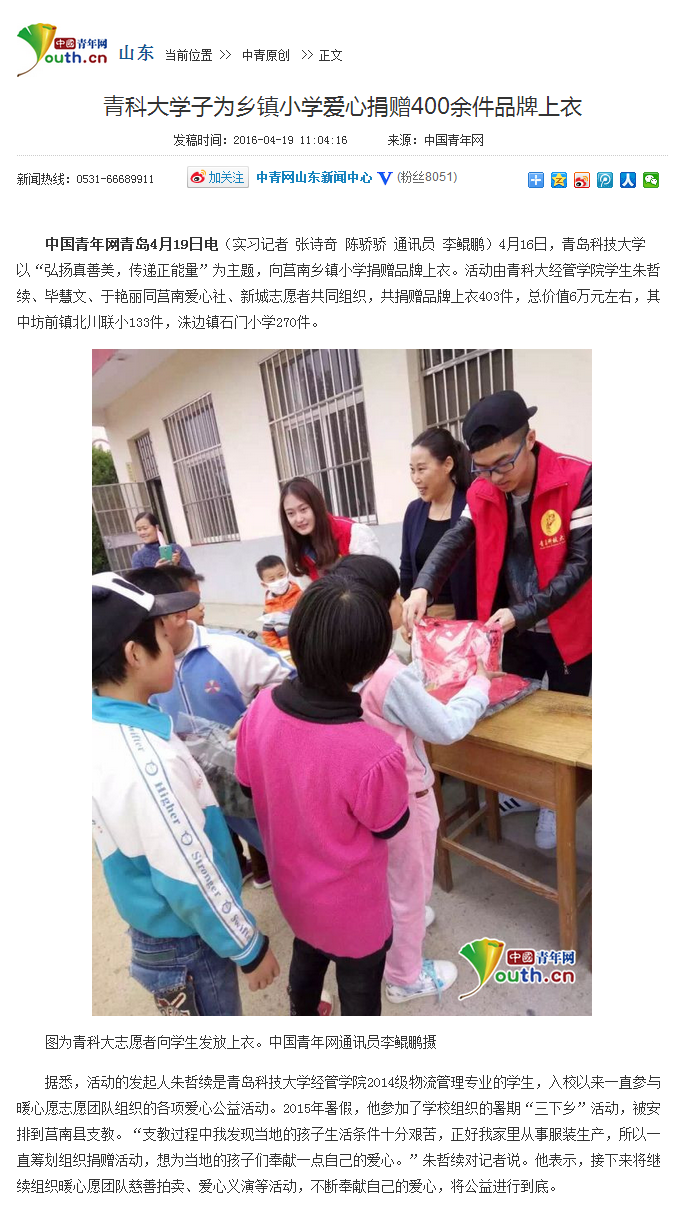 我院学子为乡镇小学爱心捐赠400余件品牌上衣