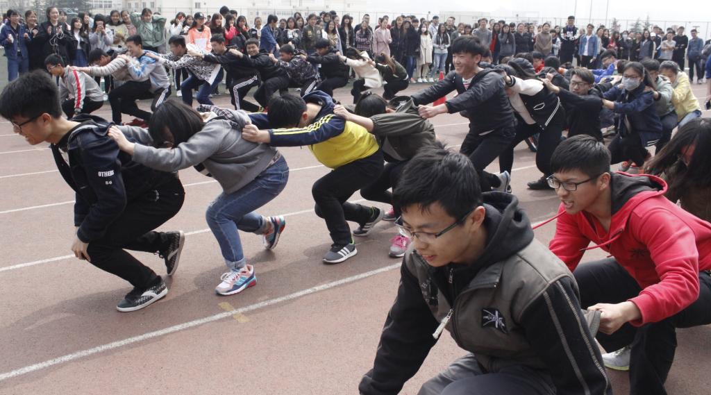 首届大学生春季运动会在崂山校区体育场成功举行。
