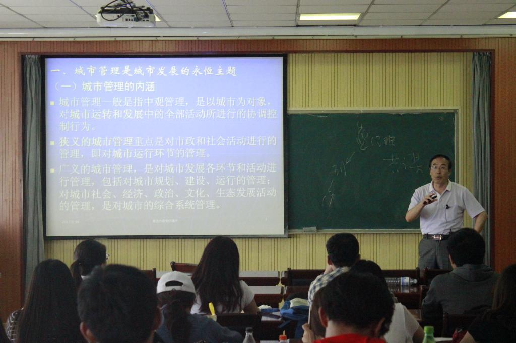 师生作了题为《贯彻发展新理念,提升城市管理水平》的专题报告。论坛由城管系教授刘广珠主持,学院教师、城市管理系全体本科生参加了本次报告会。