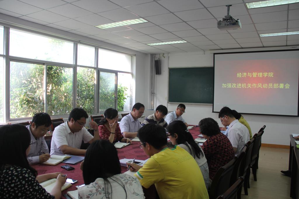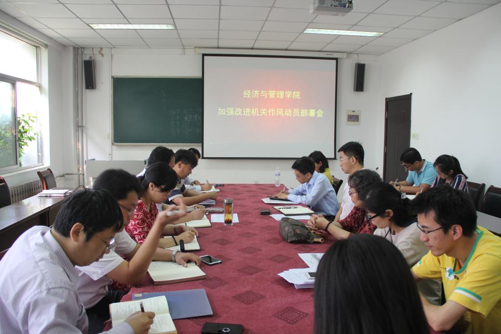 加强和改进机关作风建设动员部署会在经管楼415室召开。院领导及学院办公室、分团委(学工办)、教学办、资料室、实验中心、MBA教育中心、MPAcc教育中心全体工作人员参加了会议。